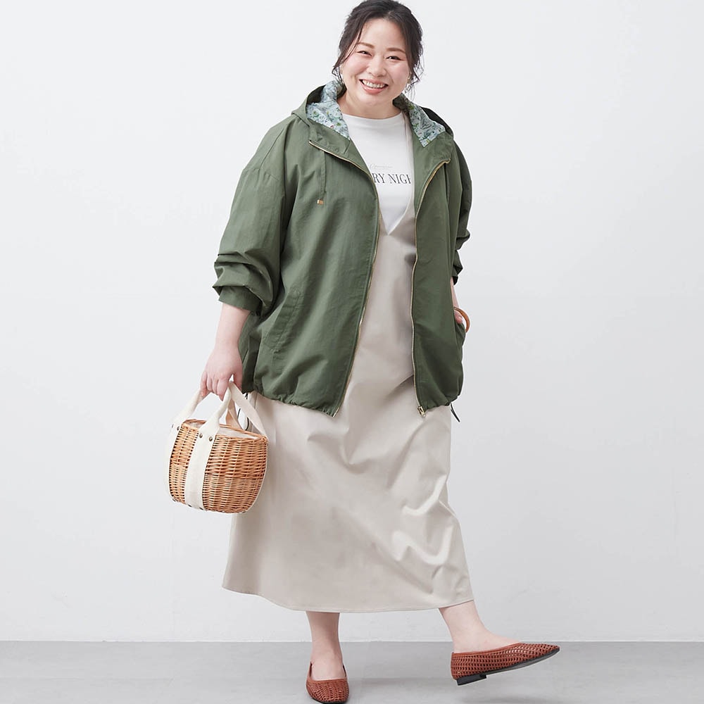 裏地の花柄に心躍る。体型カバーも叶う大人マンパ