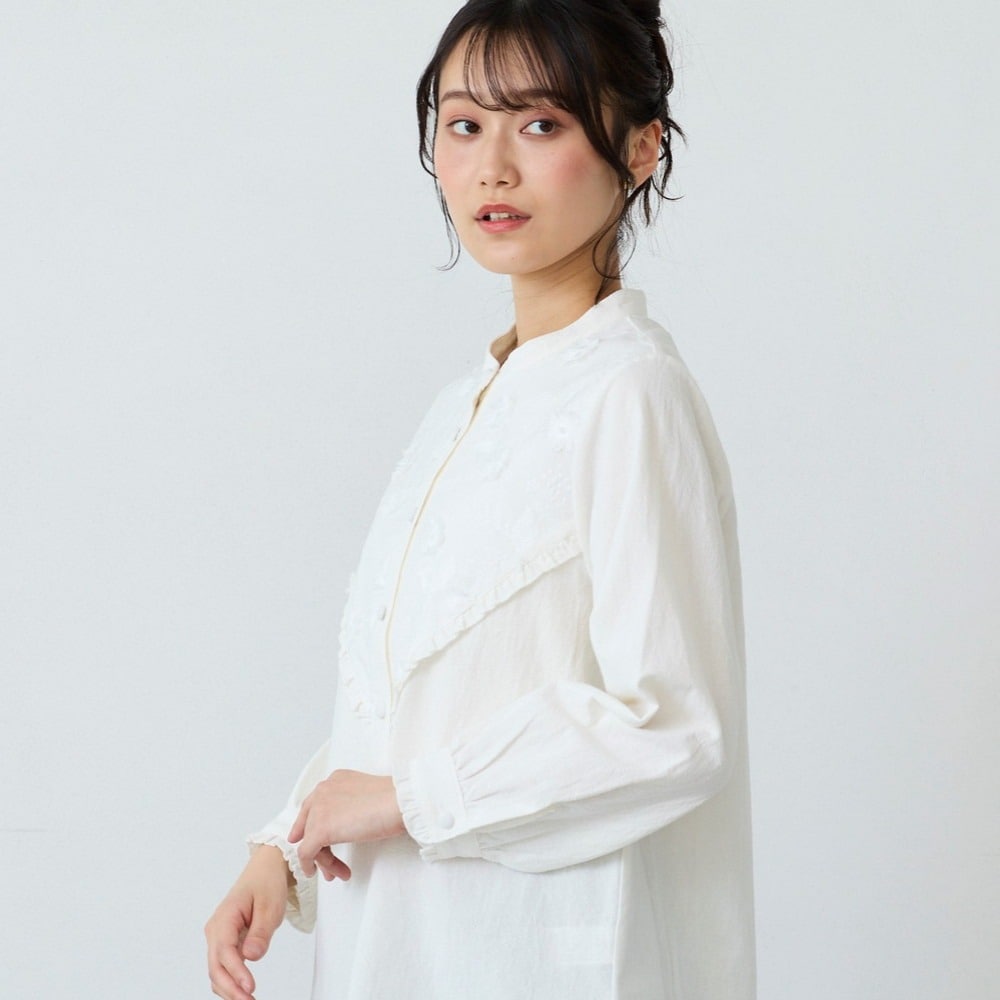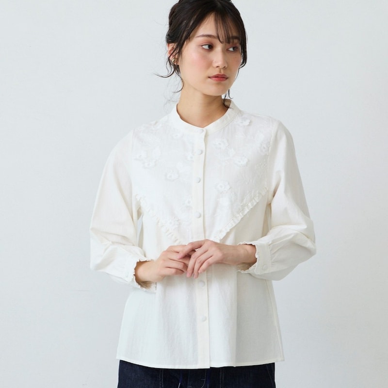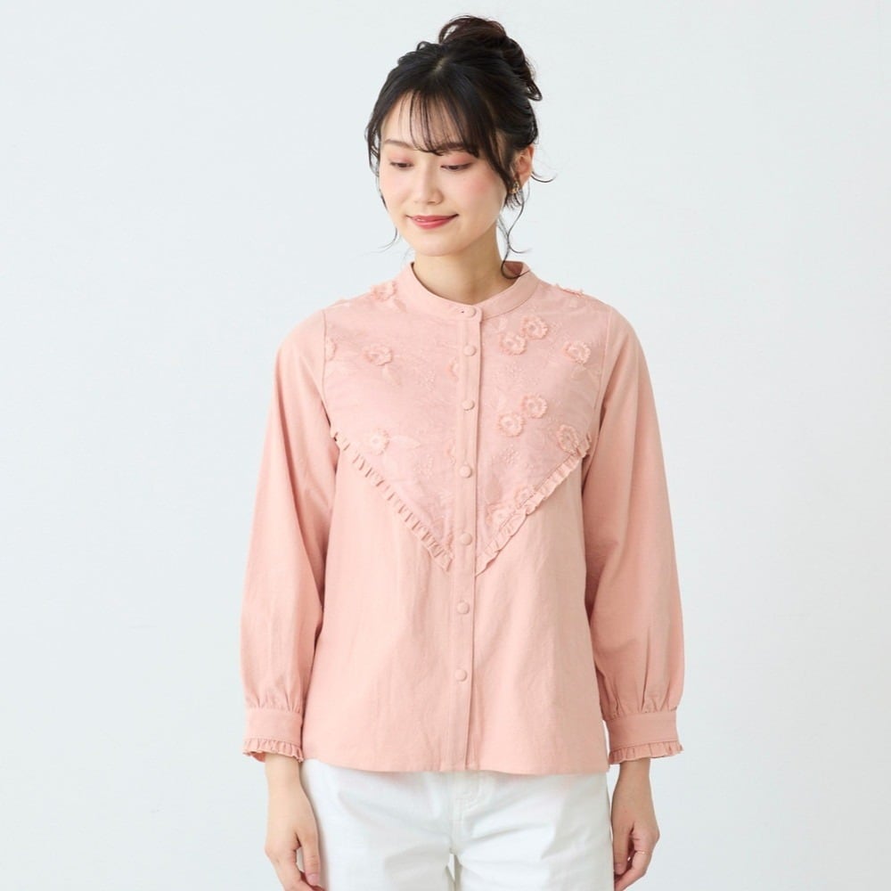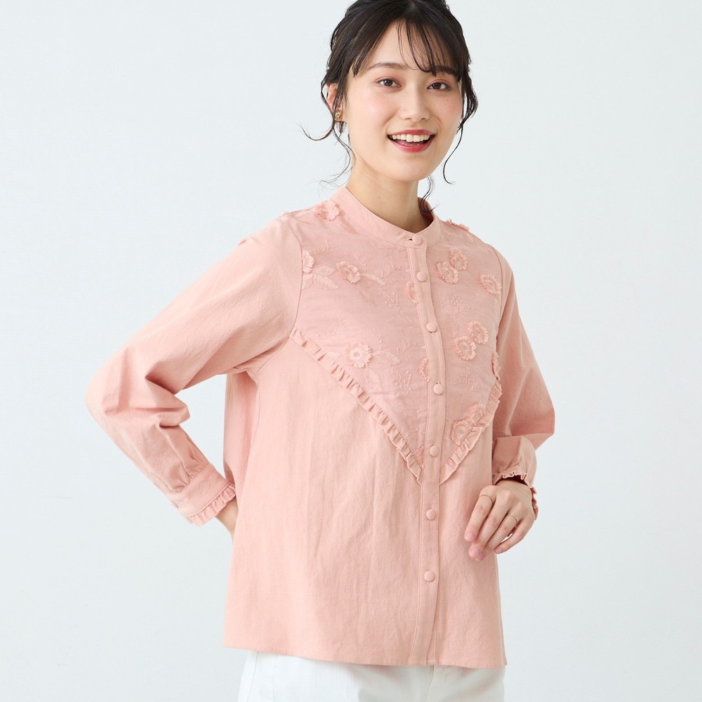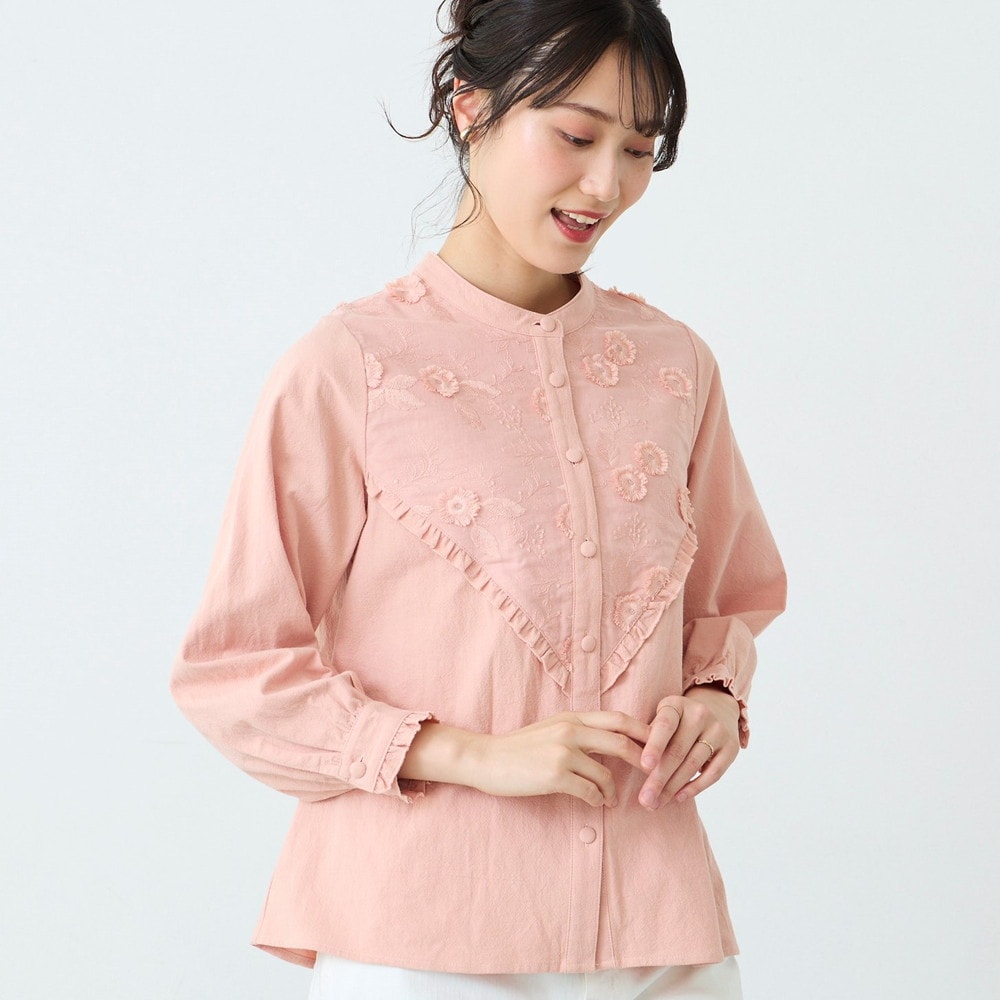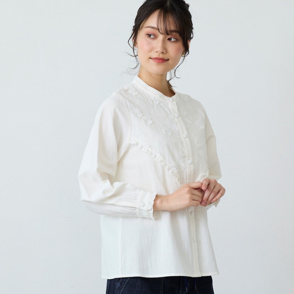 花柄刺繍とフリルが華やかな綿100%ブラウス