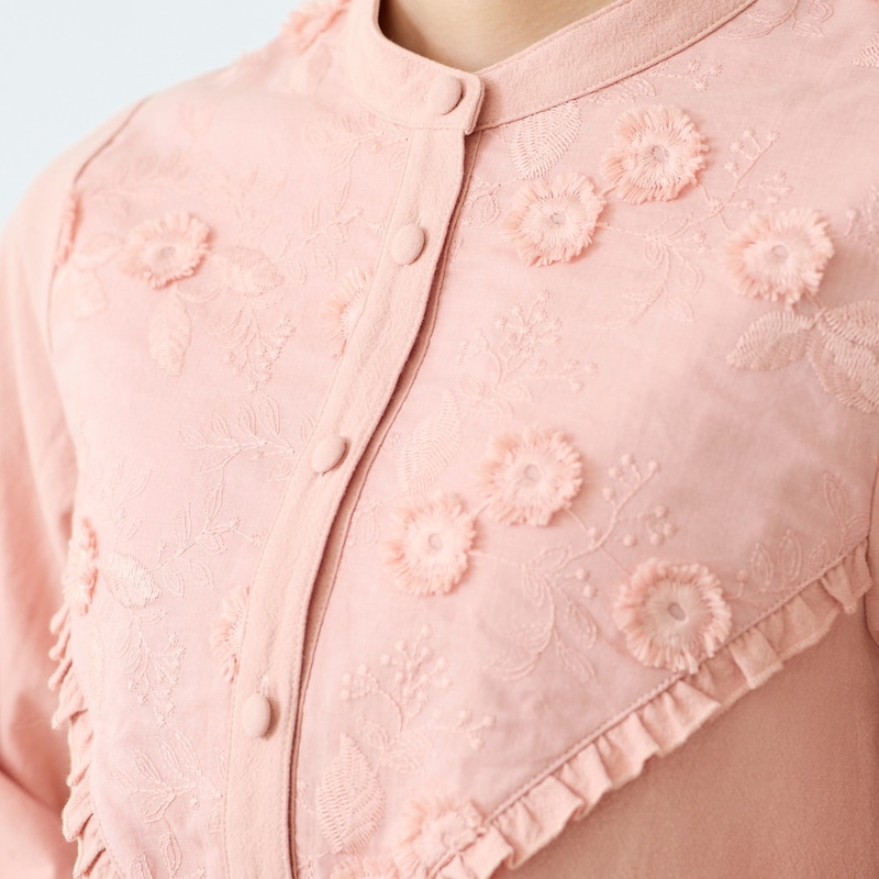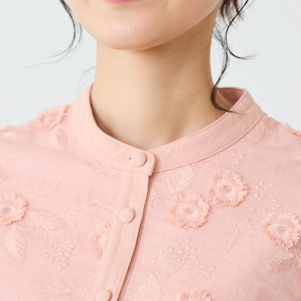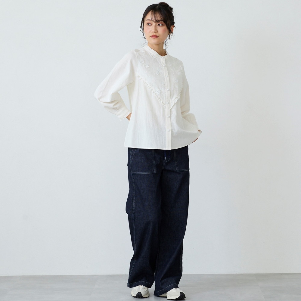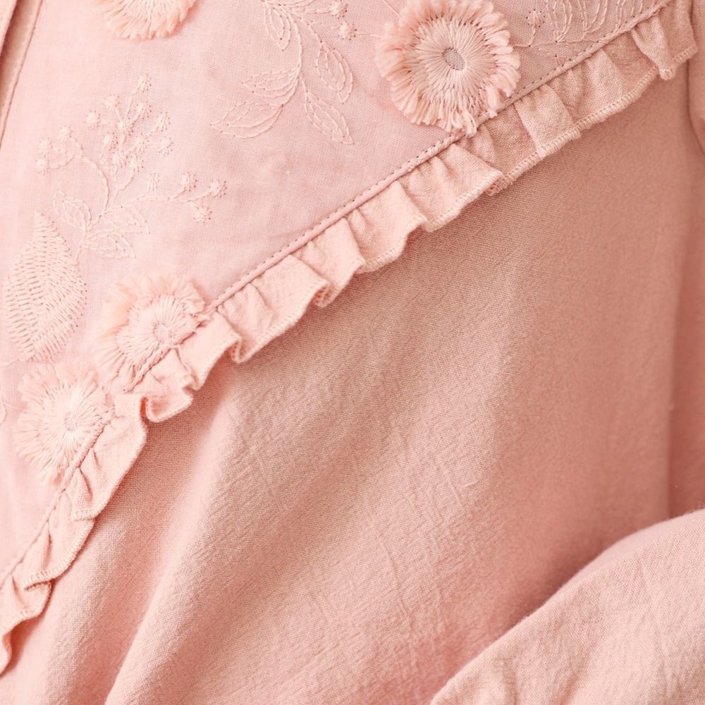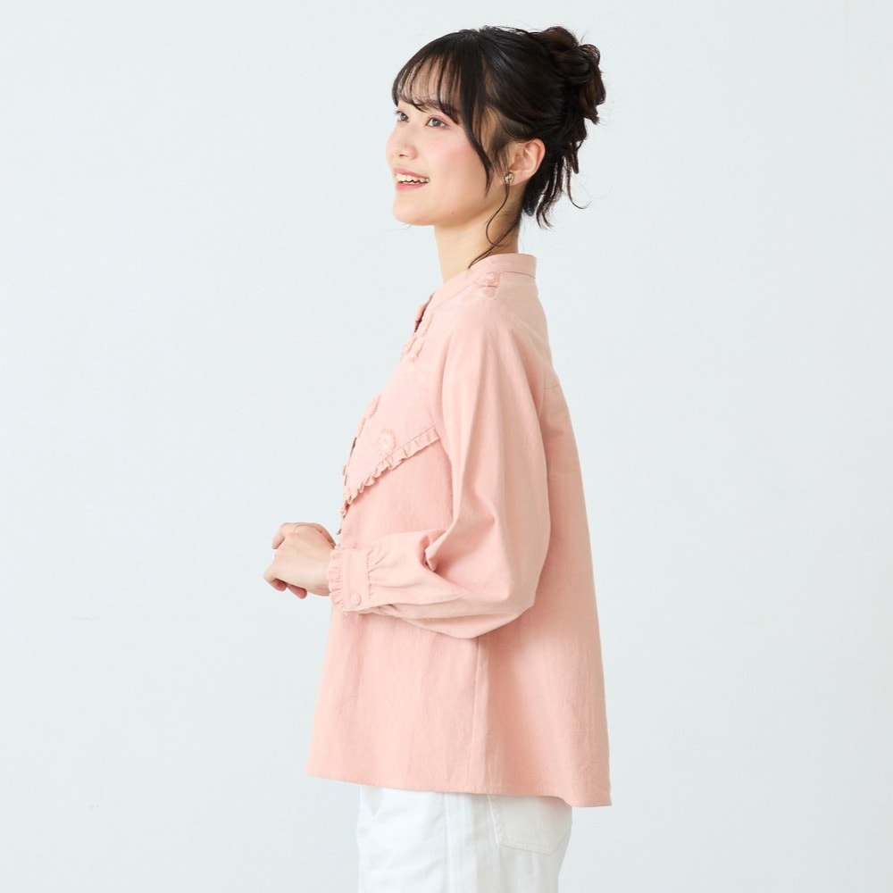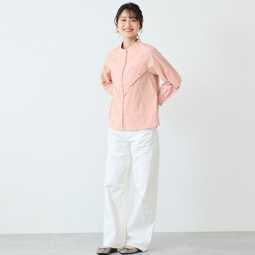 花柄刺繍とフリルが華やかな綿100%ブラウス