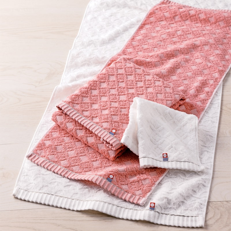 吉祥柄「七宝」をあしらった縁起が良い紅白タオル。輪が四方八方に広がっていくことから「しっぽう」となり、人と人とのご縁(輪)は、七つの宝と同等の価値があるとされました。そこから七宝の名がつき、吉祥柄となりました。