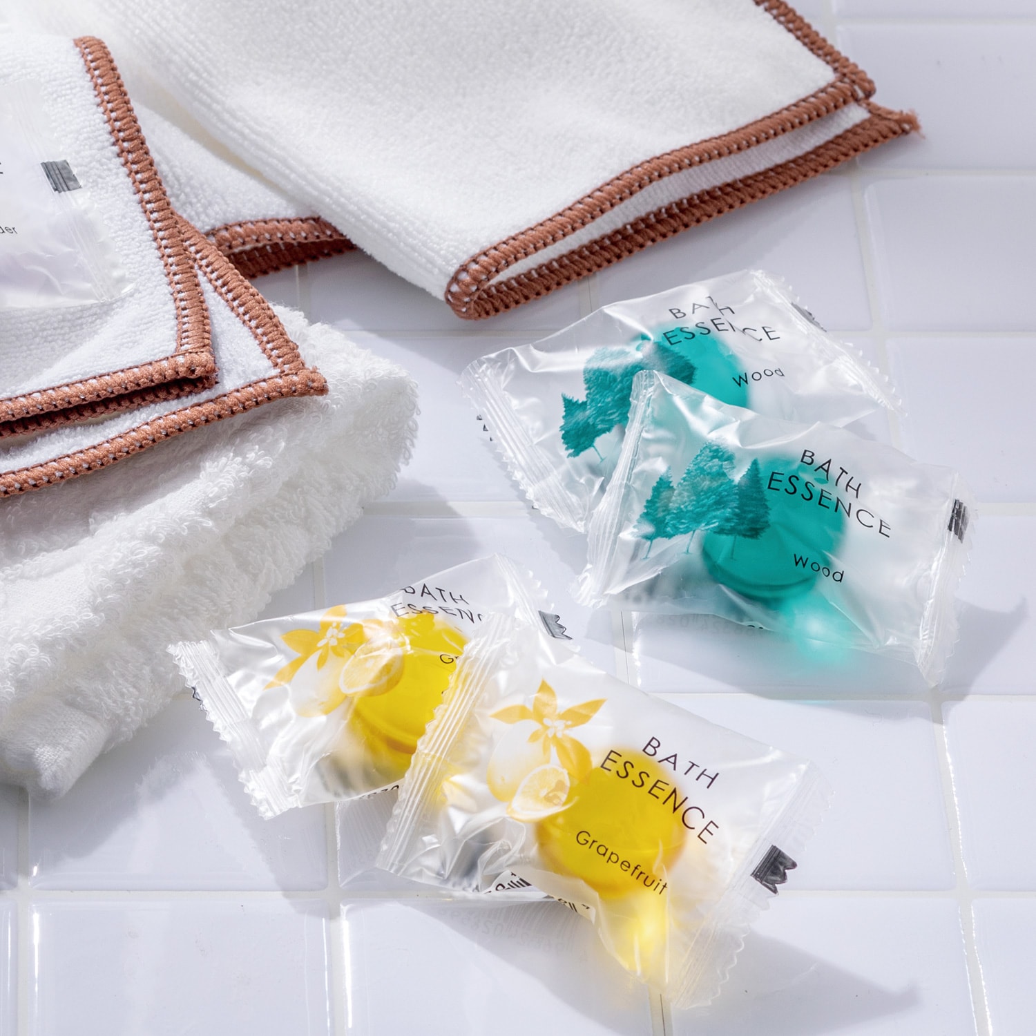 ●日本製(バスエッセンス(ウッド、グレープフルーツ)、ウォッシュタオル)、中国製(マイクロファイバークロス)