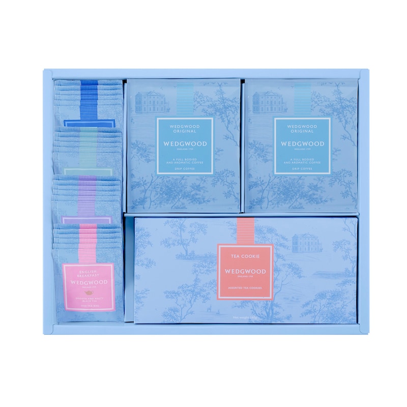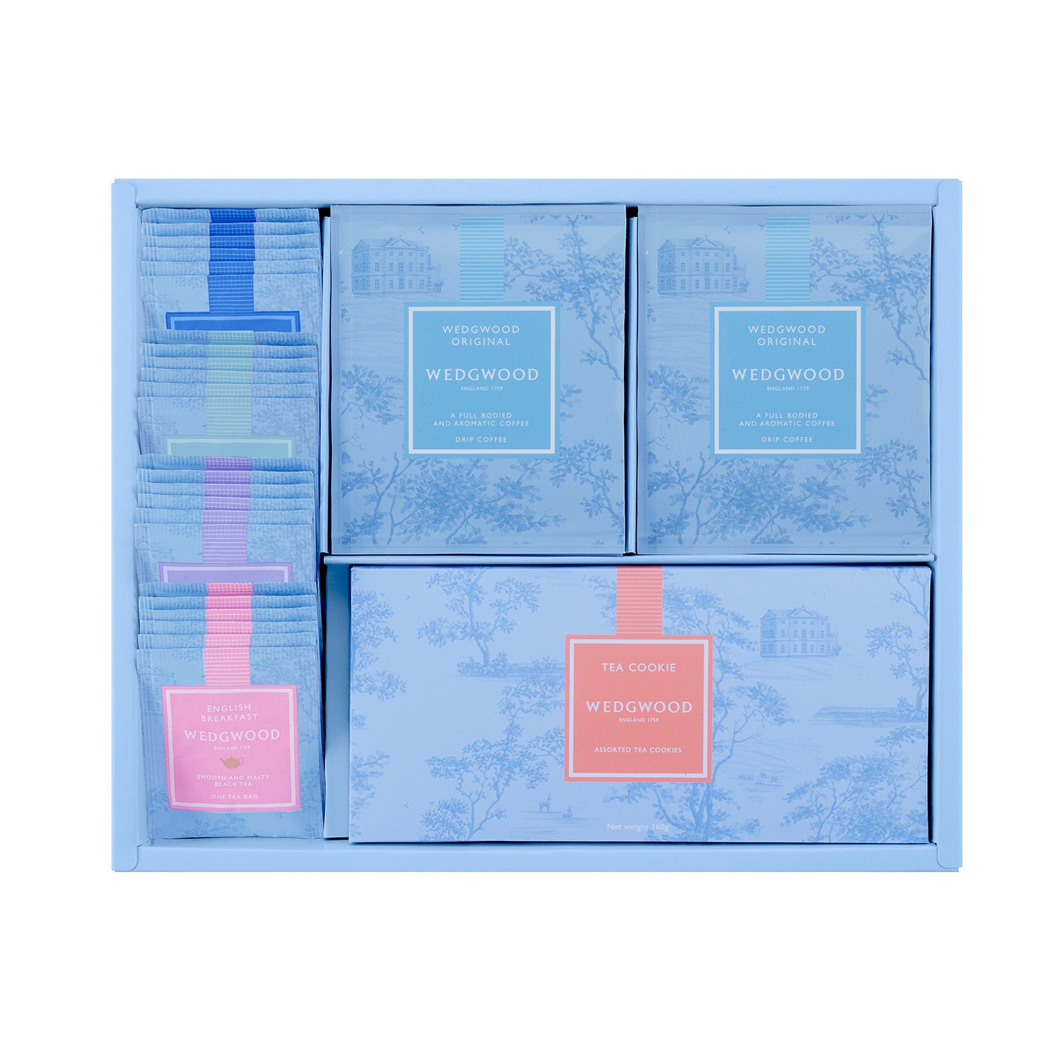 イングリッシュブレックファスト、マハラジャダージリン、アールグレイ、オリジナル(各2g)×各6、オリジナルドリップコーヒー(10g)×6、クッキーアソート(アップルティー、レモンティー)(各80g)