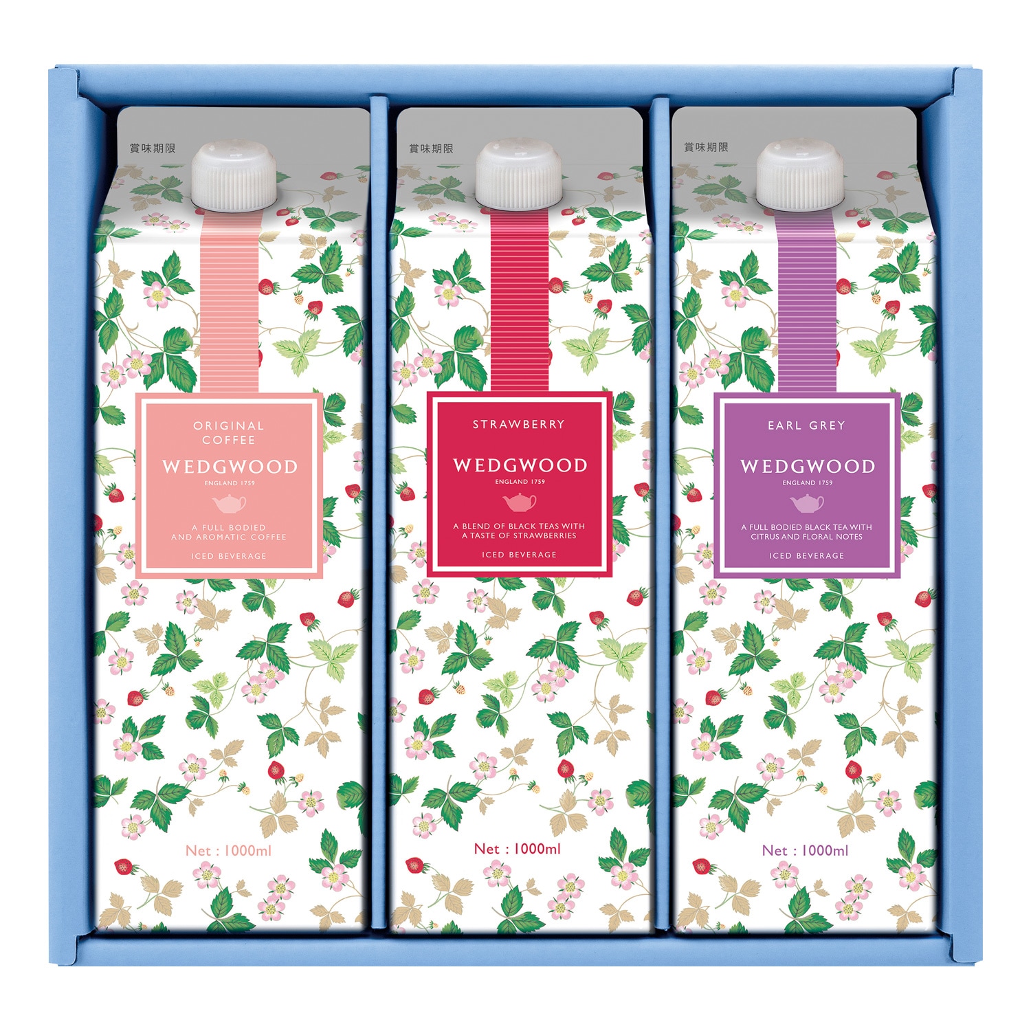 アールグレイティー(無糖)、ストロベリーティー(無糖)、オリジナルコーヒー(無糖)(各1L)