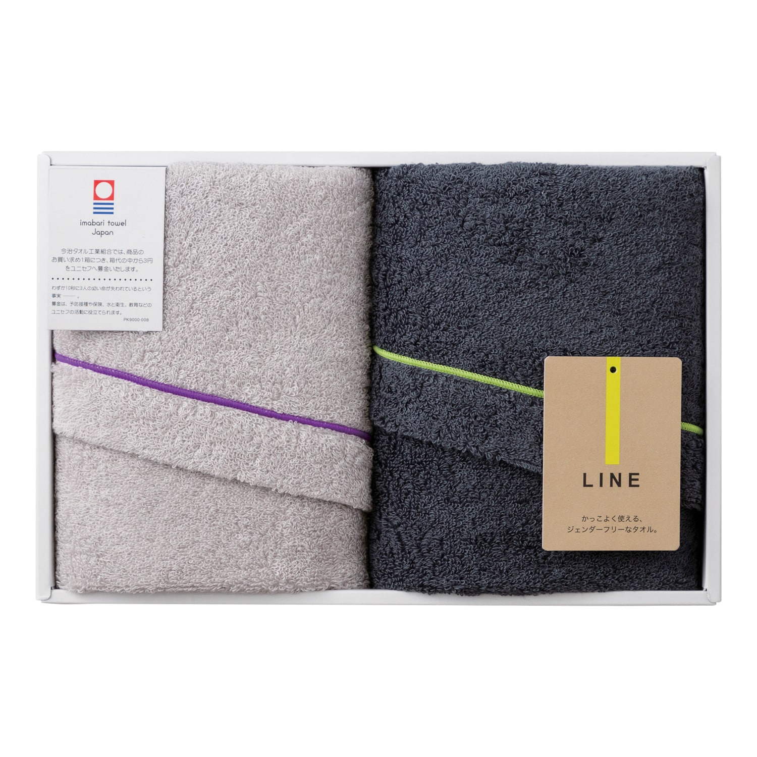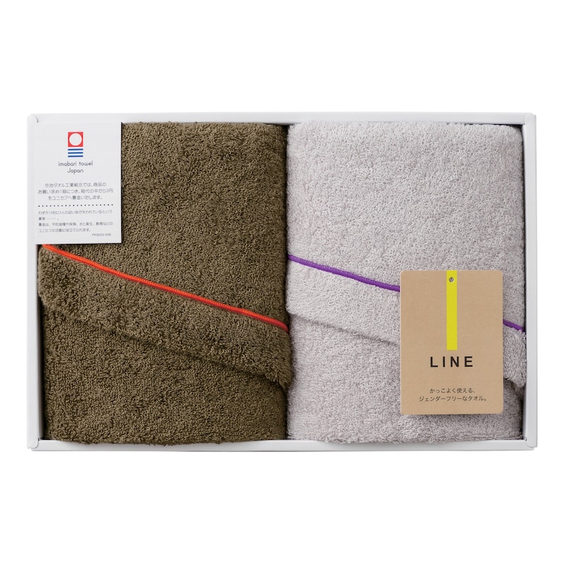 クールな生地色に鮮やかなラインとループリボンが際立つジェンダーフリーな「LINE」。加えて肌に馴染む使い心地を兼ね備えたタオルです。