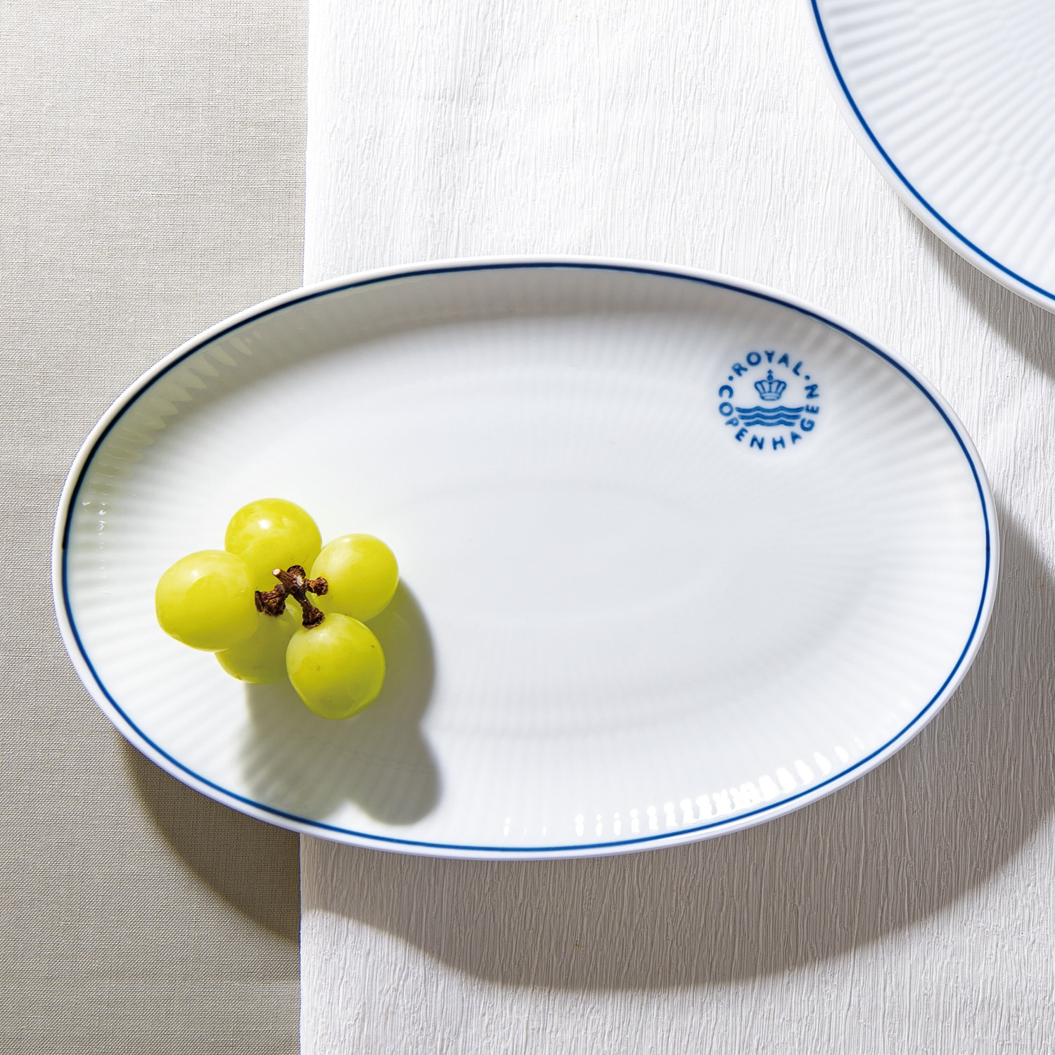 1775年、デンマーク王室の保護のもと、開窯された「ロイヤル コペンハーゲン」。シンプルで機能的な北欧デザインに、自然な自分でいられる心地よさを感じられる〈ブルーライン〉。使い勝手の良いオーバルシェイプに、縁には手描きでブルーラインが施され、ひとつひとつ手で押したスタンプが特徴です。