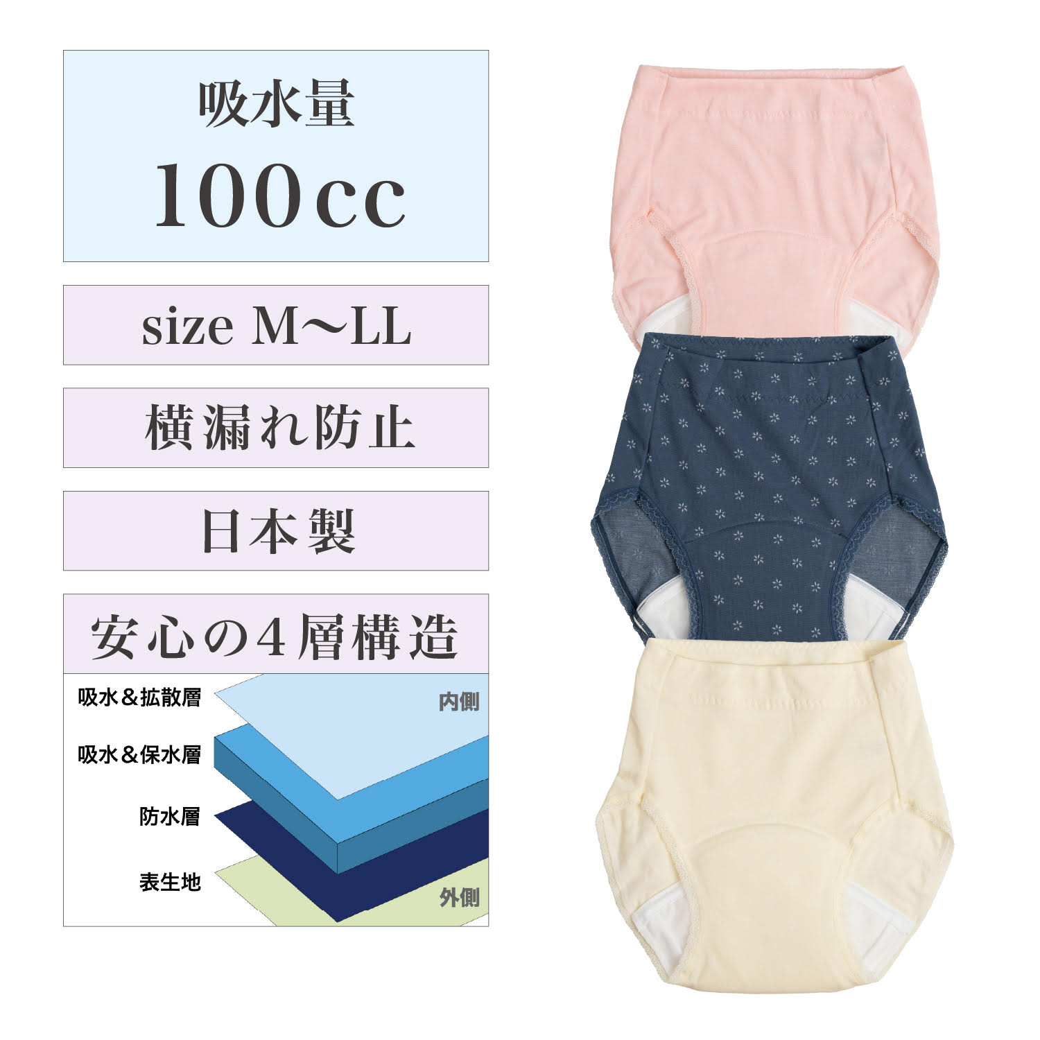 ジャカード織のやわらかフィット安心ショーツ(同サイズ3色組) 【しっかり吸水100CC・横漏れガード】