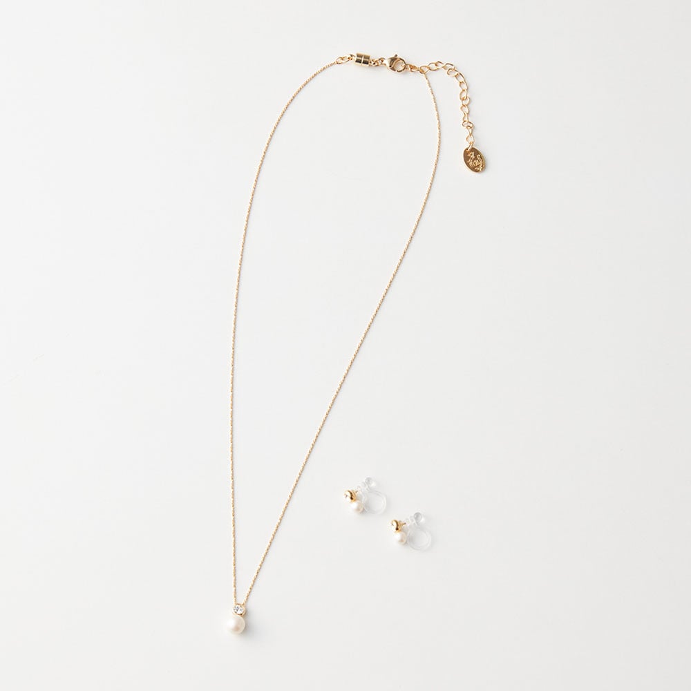 パール調ネックレス&イヤリング・ピアスセット【簡単マグネット式】