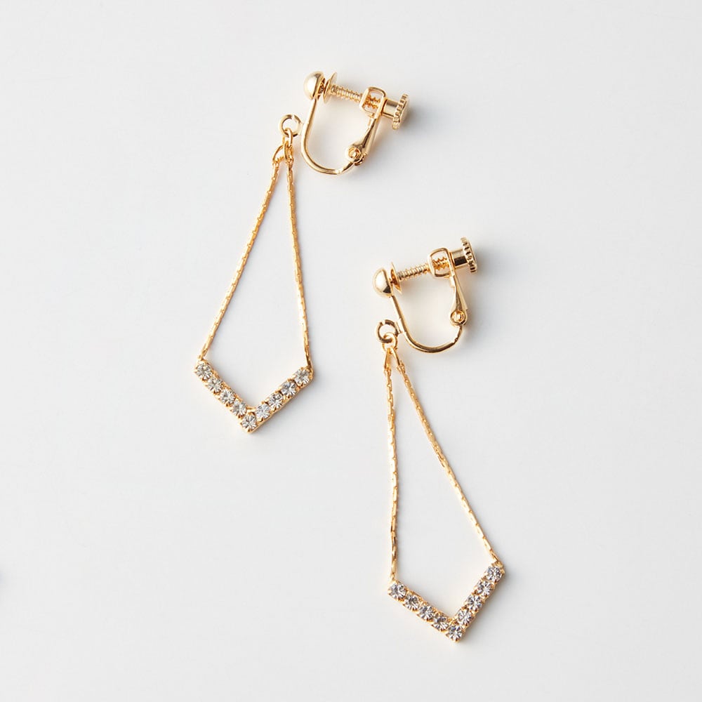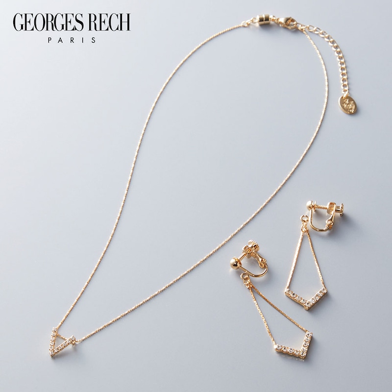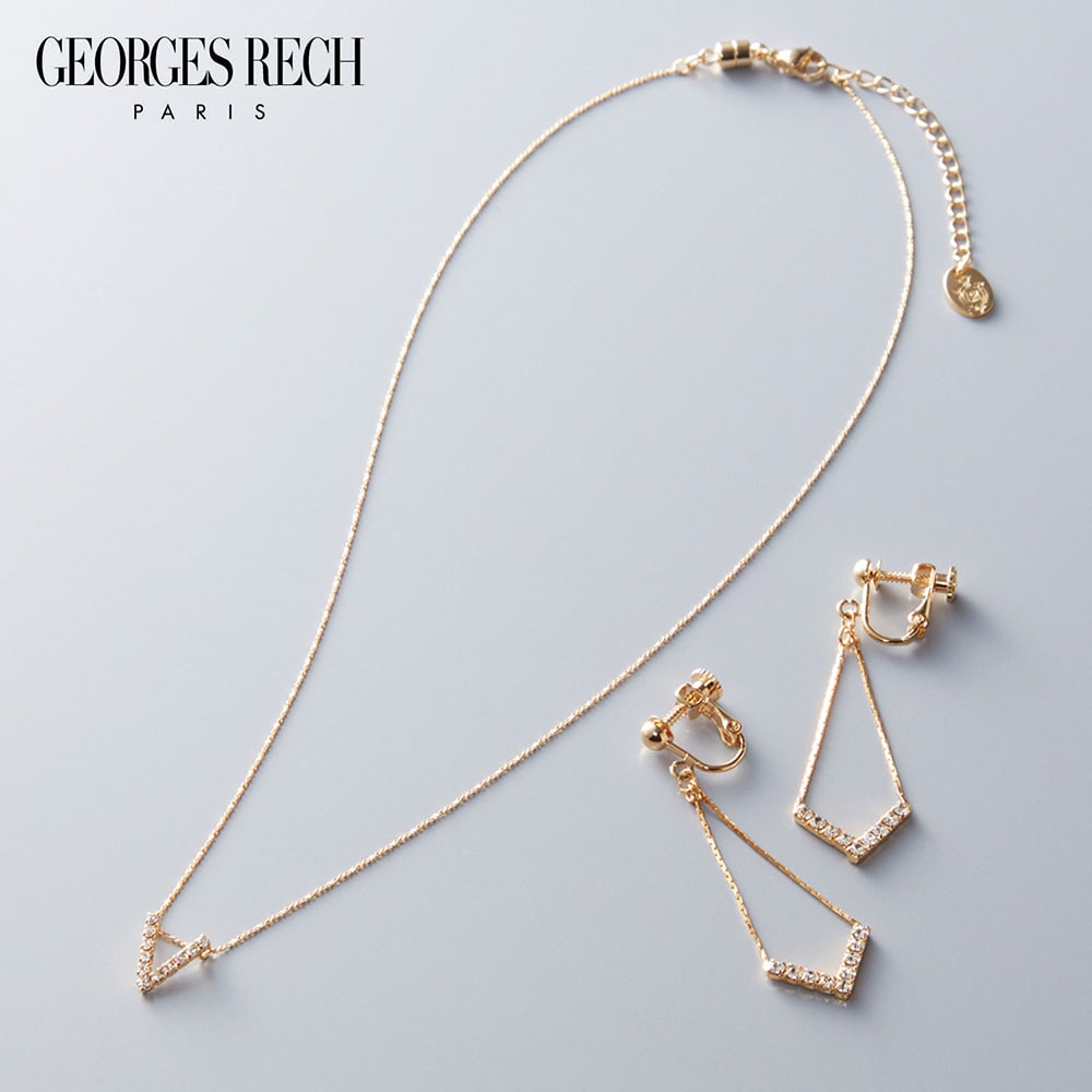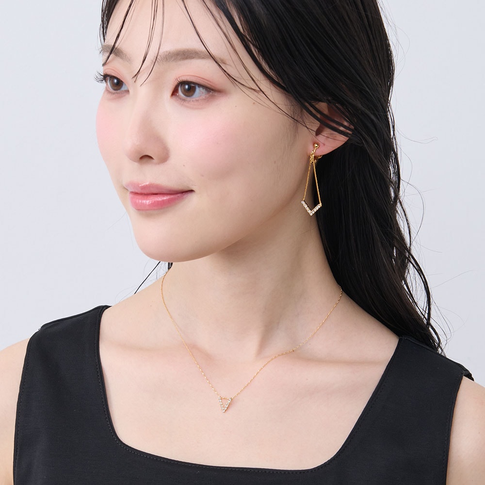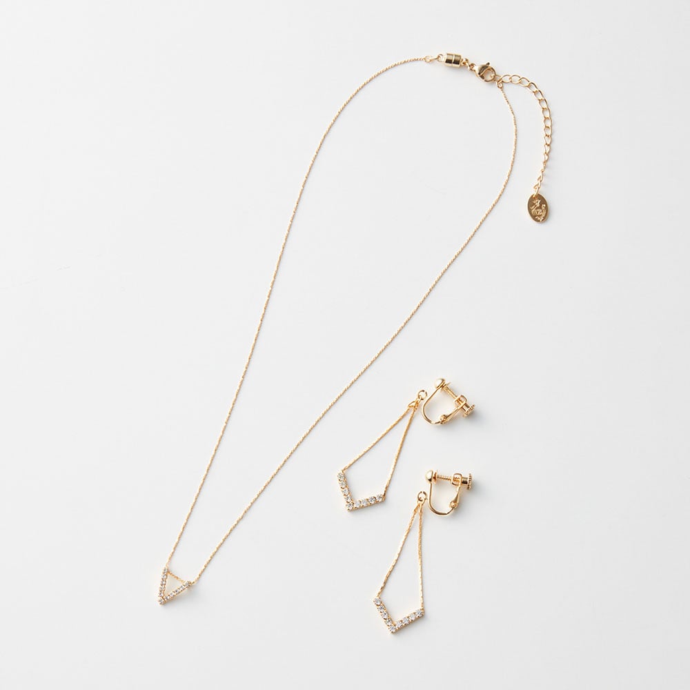華やかなきらめきが楽しめる、V字カットガラスネックレス&イヤリング