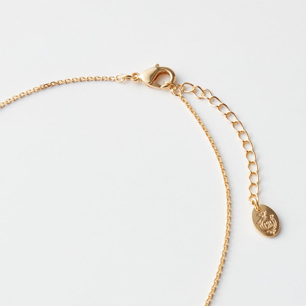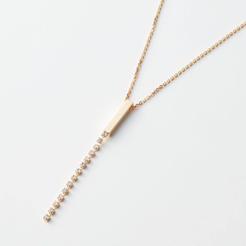 ・ネックレスは、首周りがすっきり見える直線的なシルエット