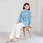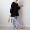 肩のラインを華奢に見せるドロップショルダーと、手首に抜け感を生む8分袖で、全身をバランス良く見せる工夫を凝らしました。