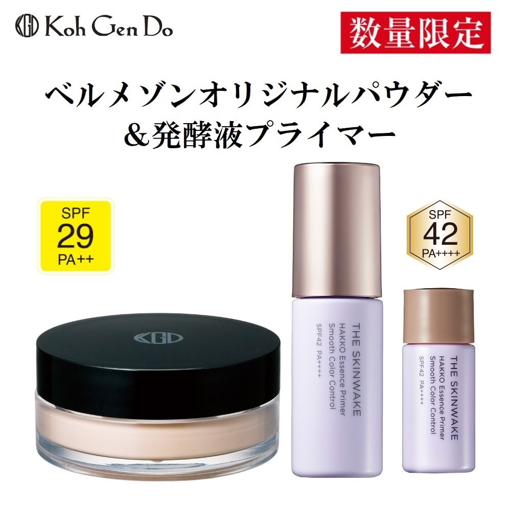 ●セット内容/ベルメゾンオリジナルパウダー リッチUV ライトベージュ 10g(SPF29・PA++)、発酵液プライマー スムースカラーコントロール 藤 本品25mL+ミニサイズ 4mL(SPF42・PA++++)