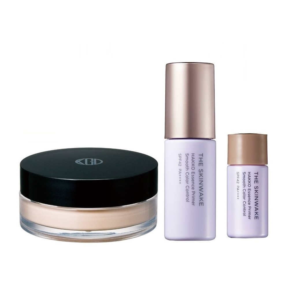 パウダー&化粧下地それぞれのレギュラーサイズに、さらに化粧下地のミニサイズも付いてお得です。