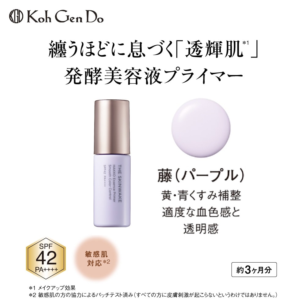 「発酵液プライマー スムースカラーコントロール(藤)」は、ひとぬりで毛穴や凹凸をなめらかに整え(※)、透明感と輝きを仕込む化粧下地。