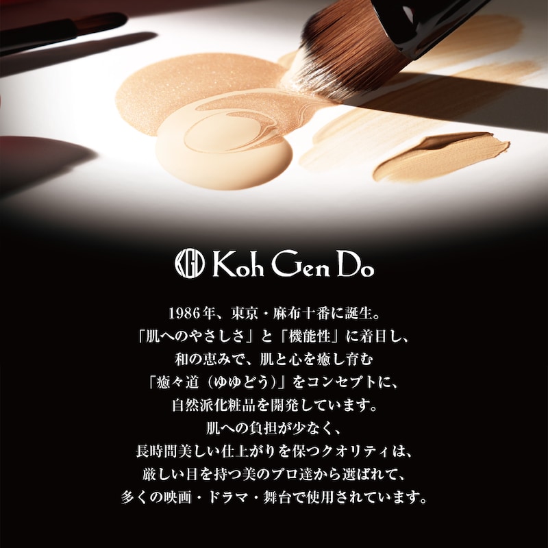 「肌へのやさしさ」と「機能性」に着目し、和の恵みで、肌と心を癒し育む「癒々道(ゆゆどう)」をコンセプトに、自然派化粧品を開発しています。肌への負担が少なく、長時間美しい仕上がりを保つクオリティは、厳しい目を持つ美のプロ達から選ばれて、国内外多くの映画・ドラマ・舞台で使用されています。