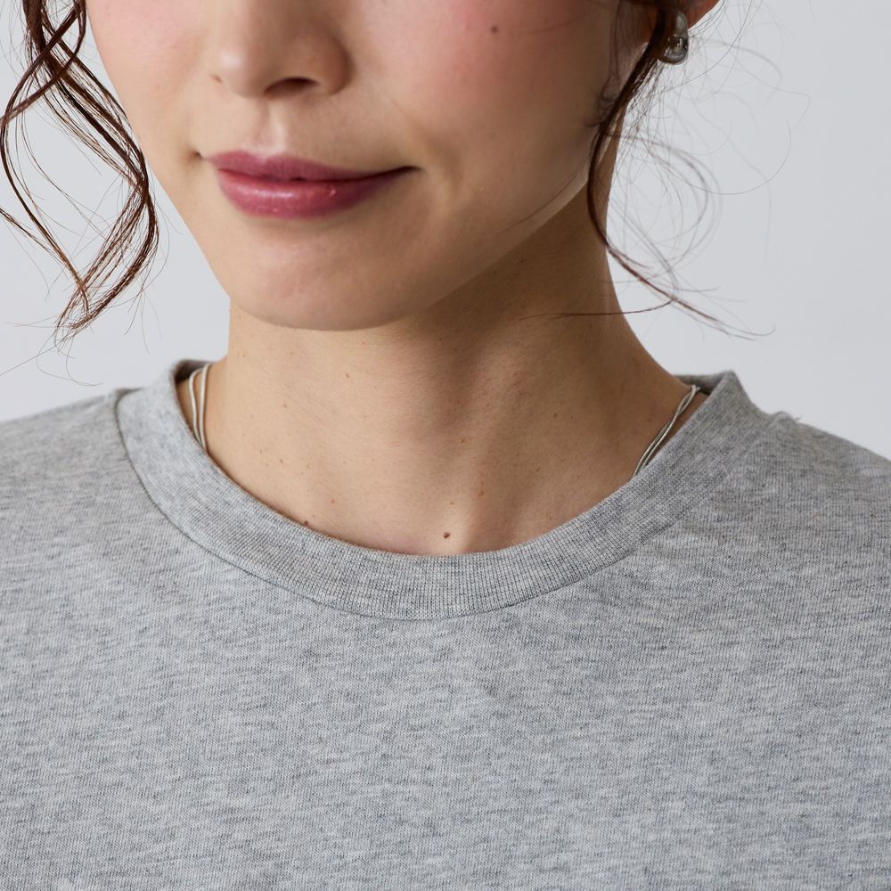 ・首元をすっきりと見せるシンプルなクルーネック