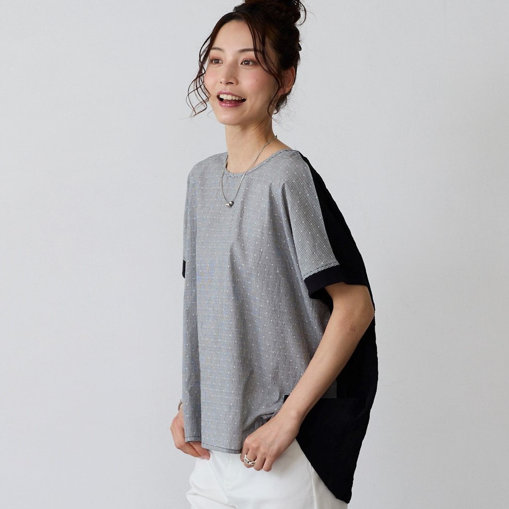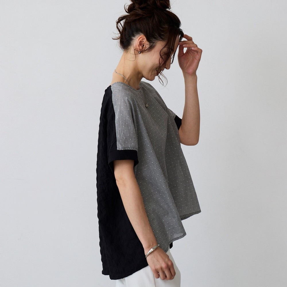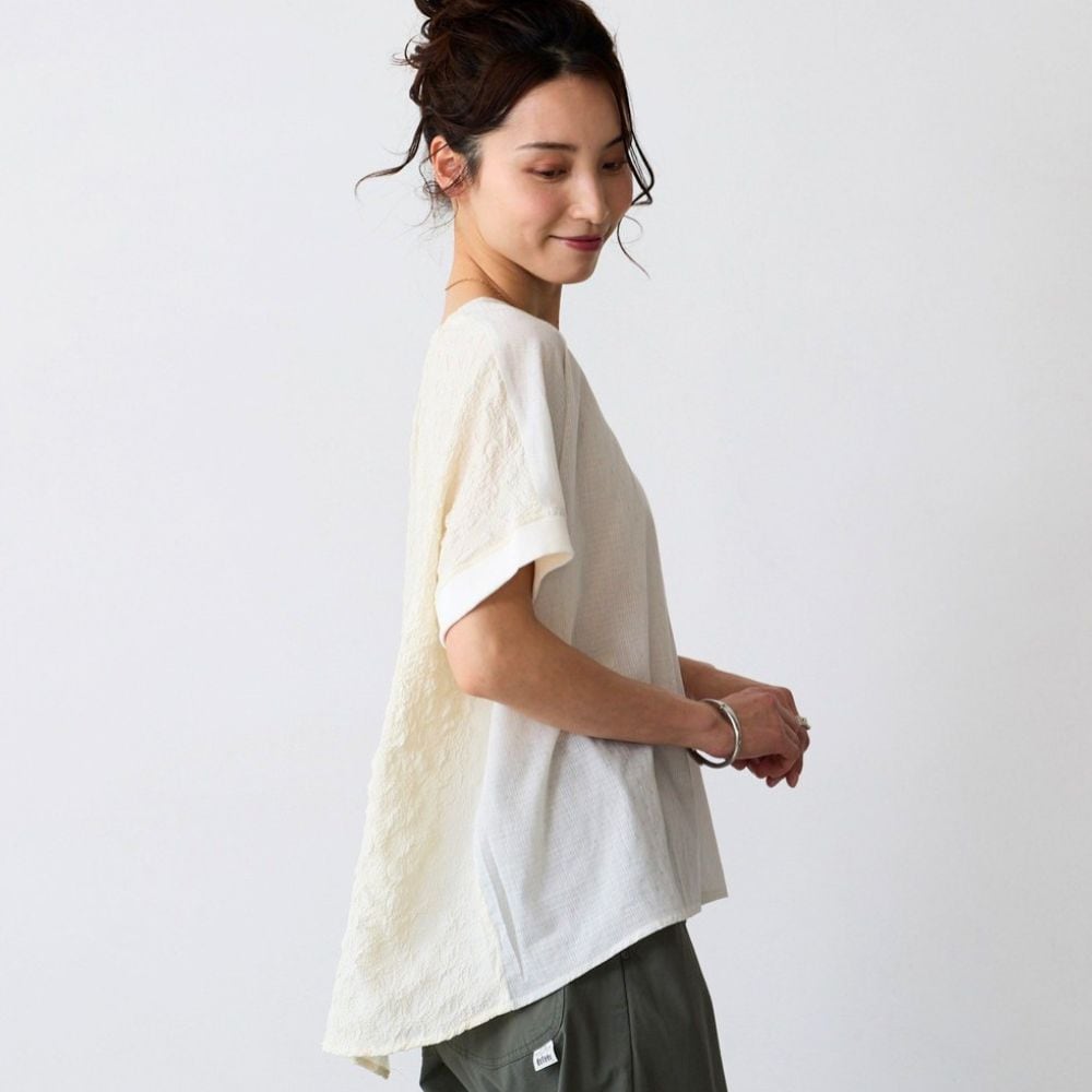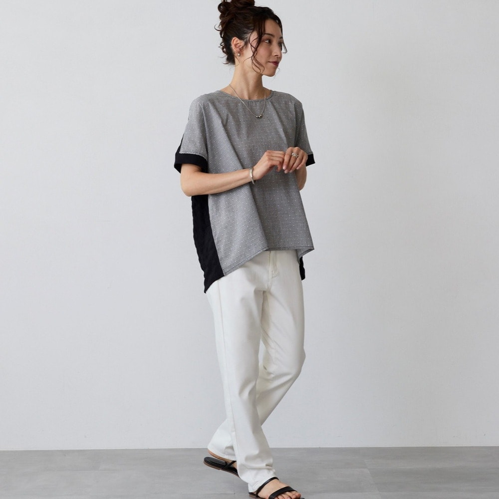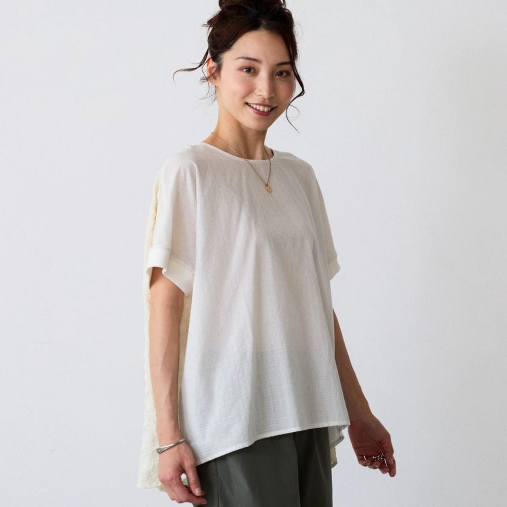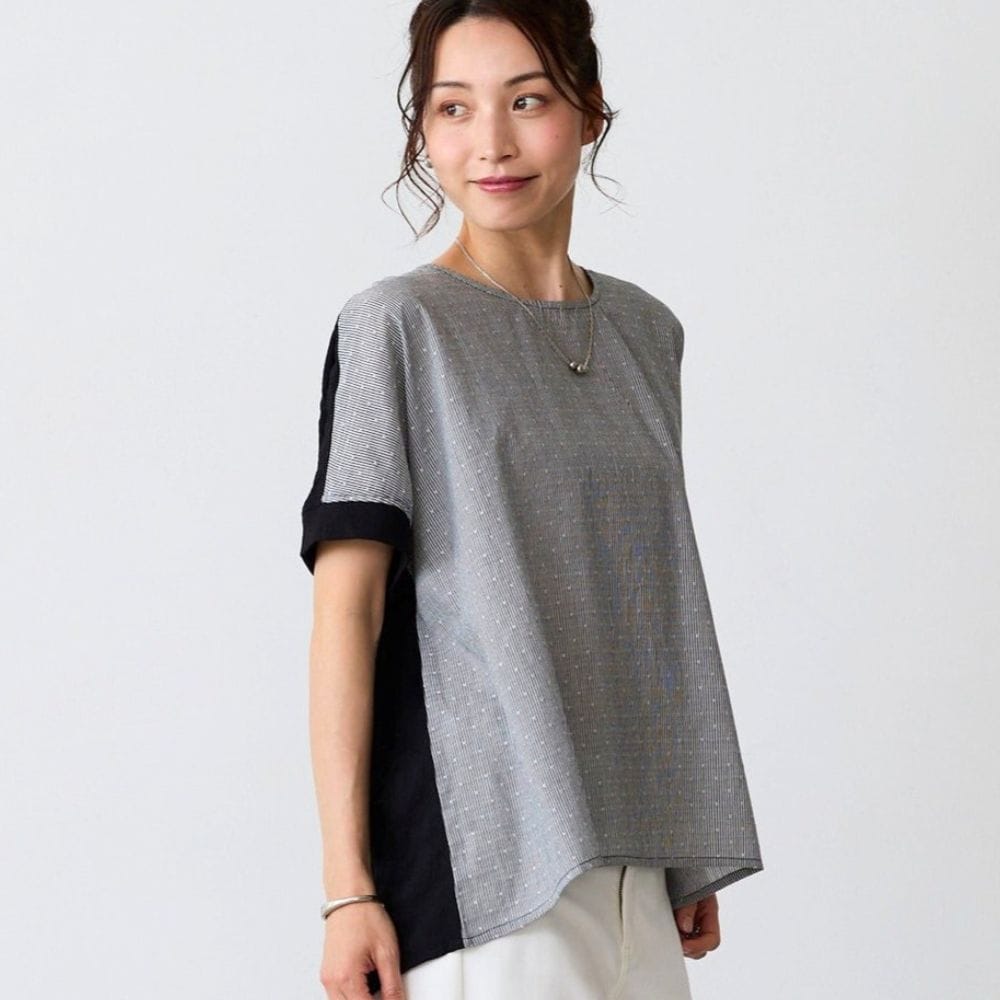 異素材の切替えで魅せる体型カバーブラウス