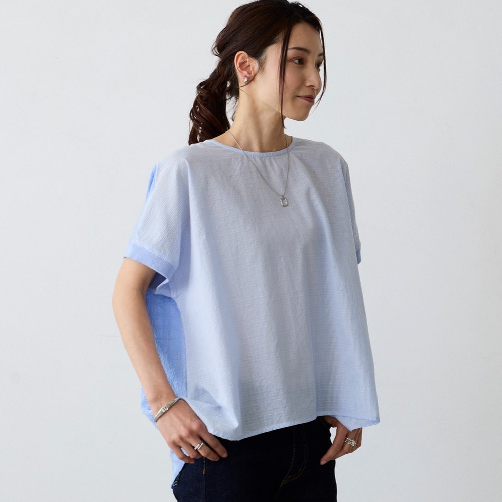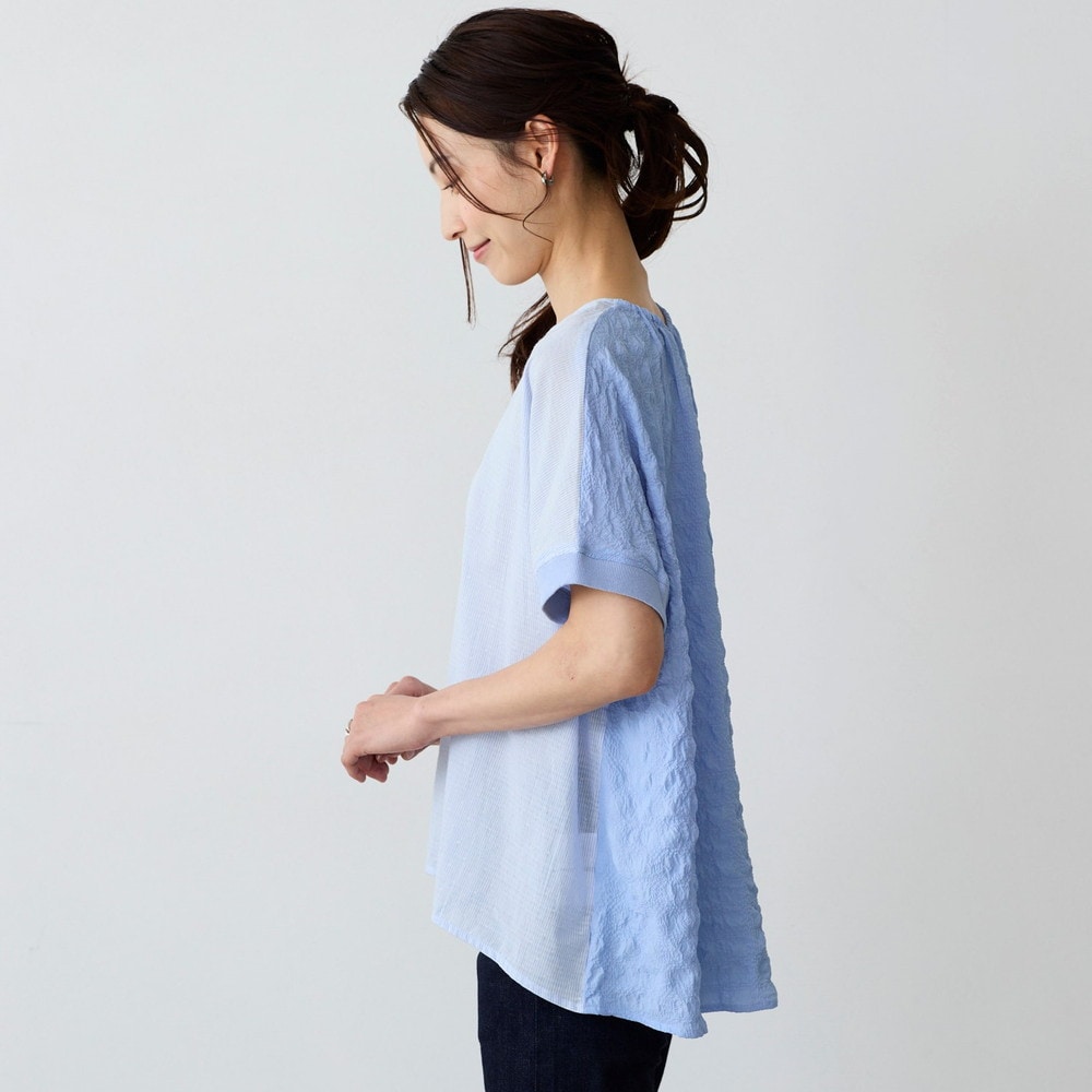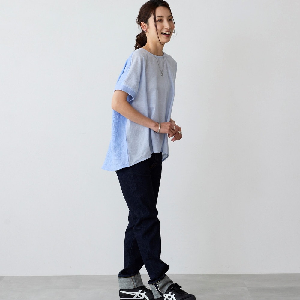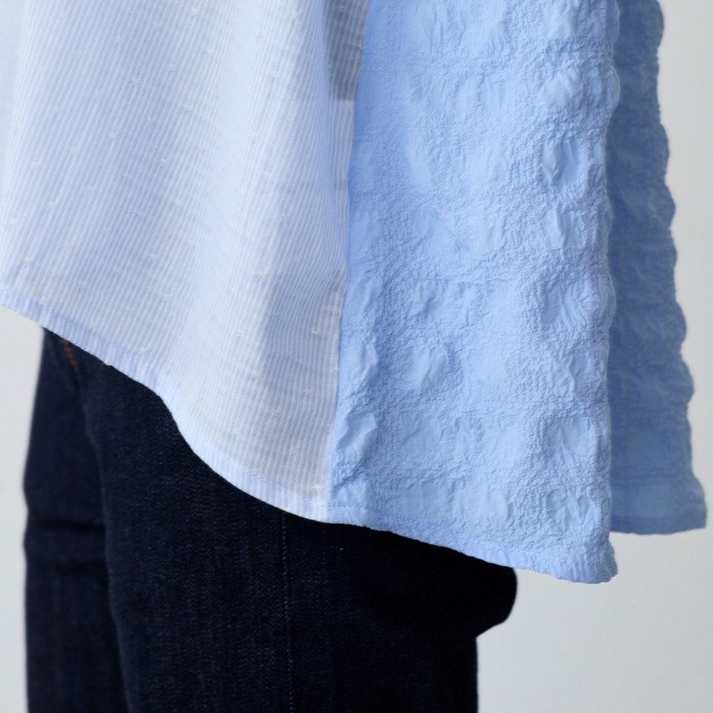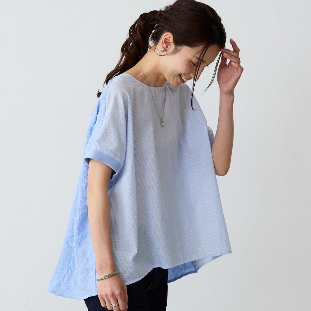 異素材の切替えで魅せる体型カバーブラウス