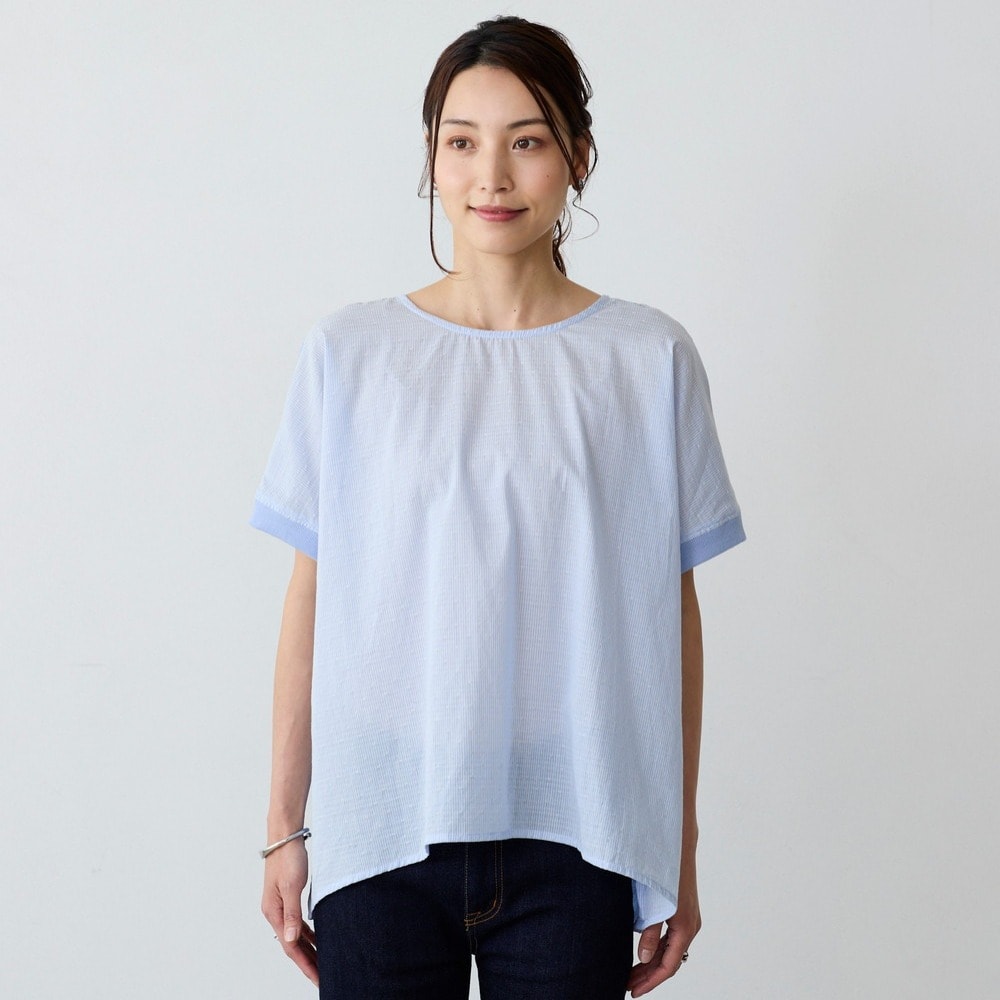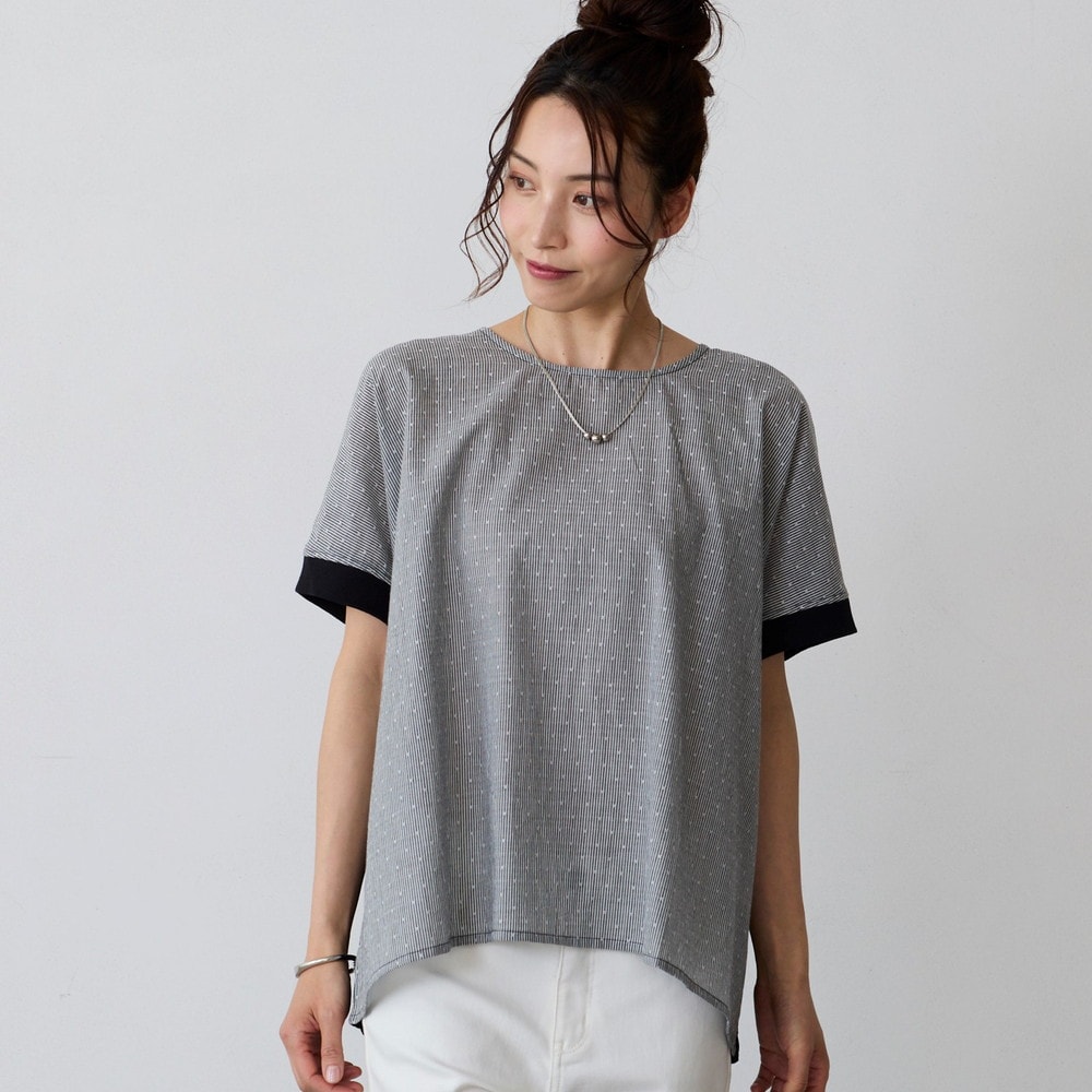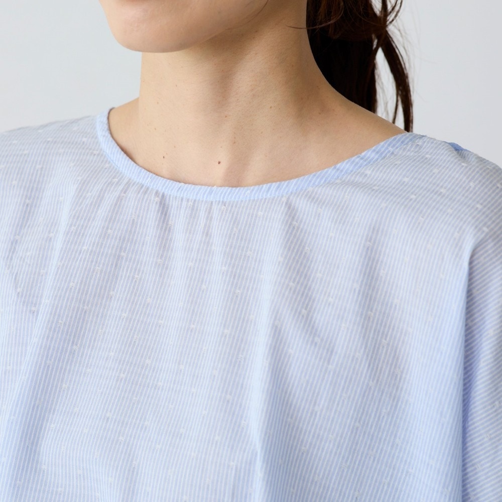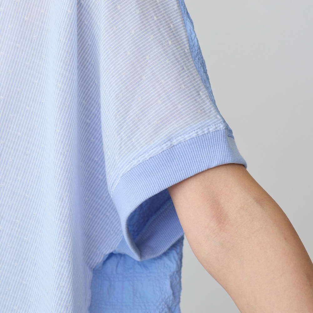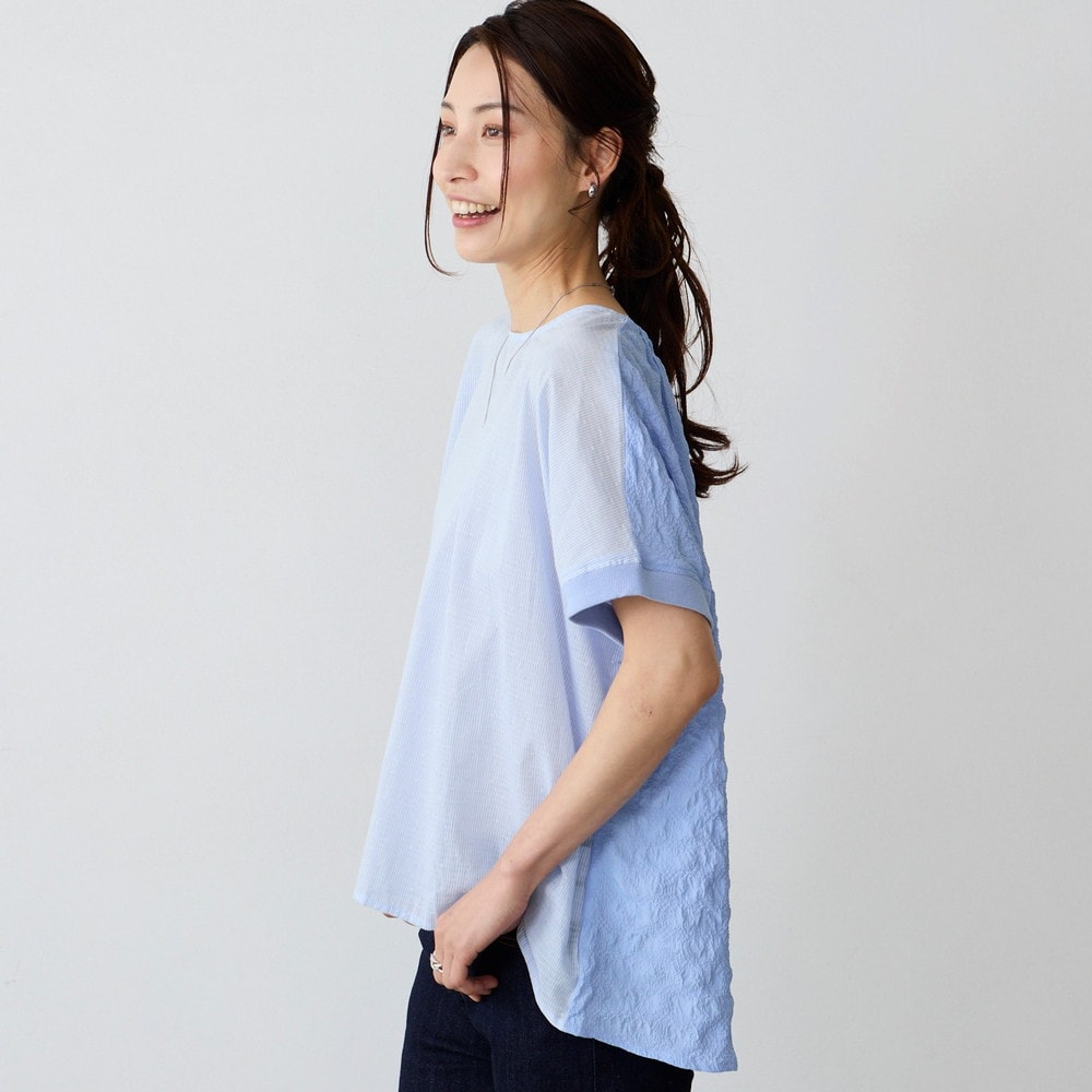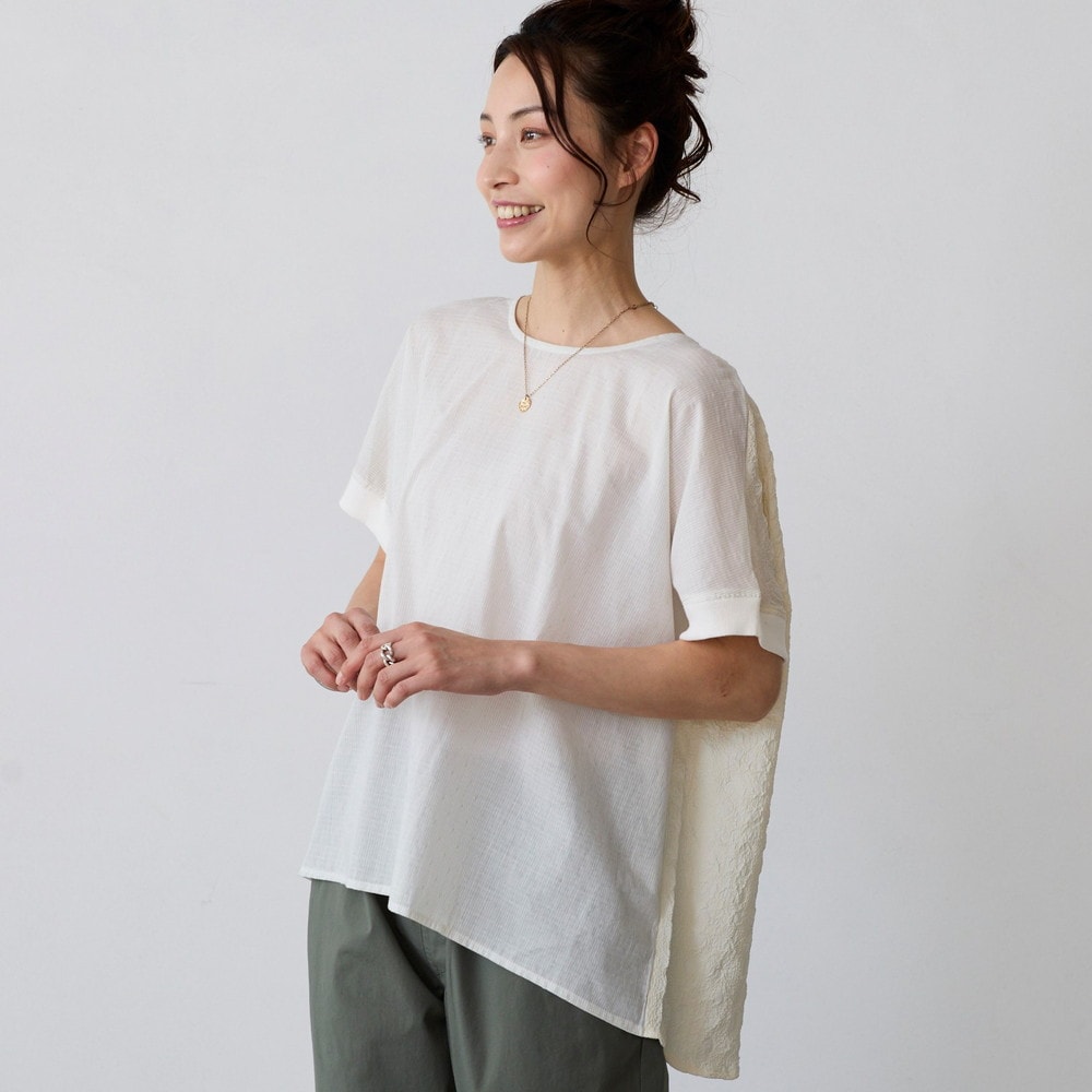 異素材の切替えで魅せる体型カバーブラウス