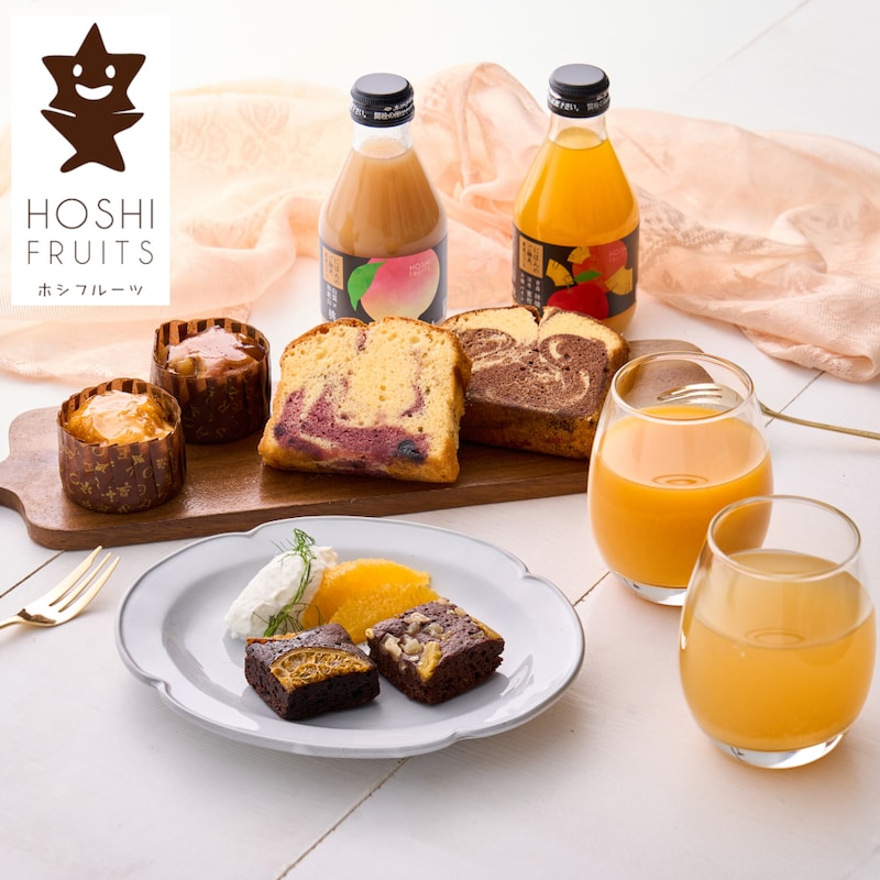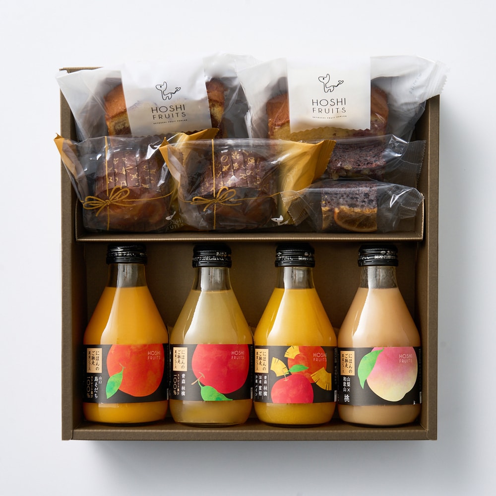 日本のフルーツの純粋な美味しさを味わうジュースと、果実の彩りを閉じ込めた華やかな焼き菓子をセットにして、贅沢なおうちカフェ時間をお届けします。