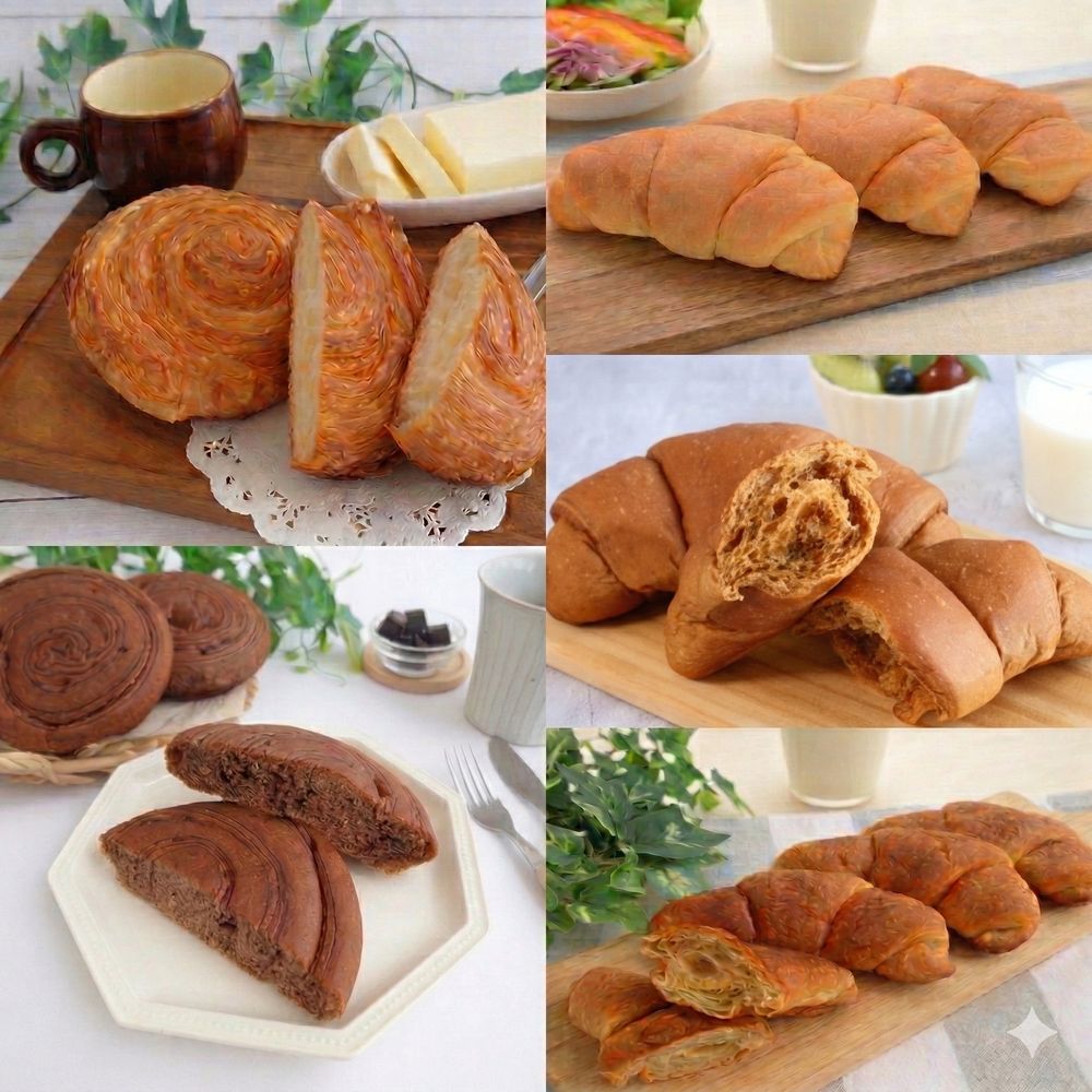 ●セット内容/デニッシュバター4個、デニッシュチョコ4個、毎日クロワッサン8個、黒糖クロワッサン8個、低糖質クロワッサン8個(計32個)