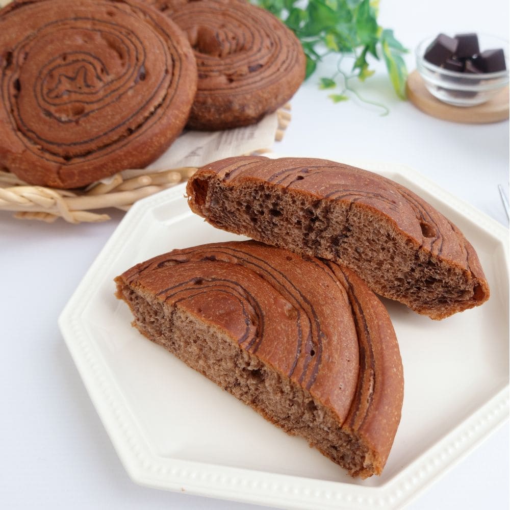 パネトーネ種使用の生地にココアパウダーを練りこみ、さらにチョコレートペーストを折り込んだデニッシュです。