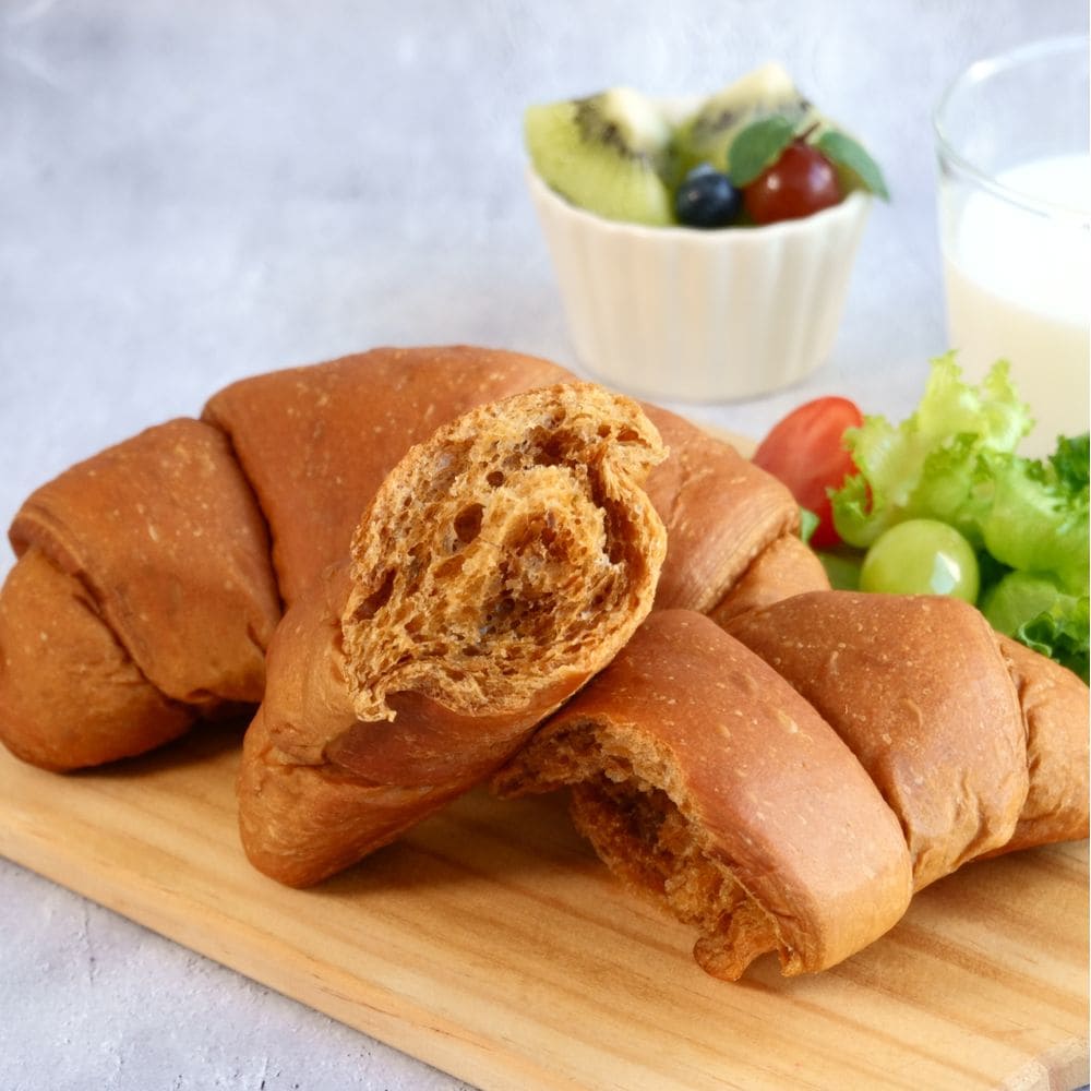 パネトーネ種を使用した小麦ブラン入りのクロワッサンです。糖質45%オフ(※日本食品標準成分表(八訂)増補2023年クロワッサン/リッチタイプと比較(100g当たり))