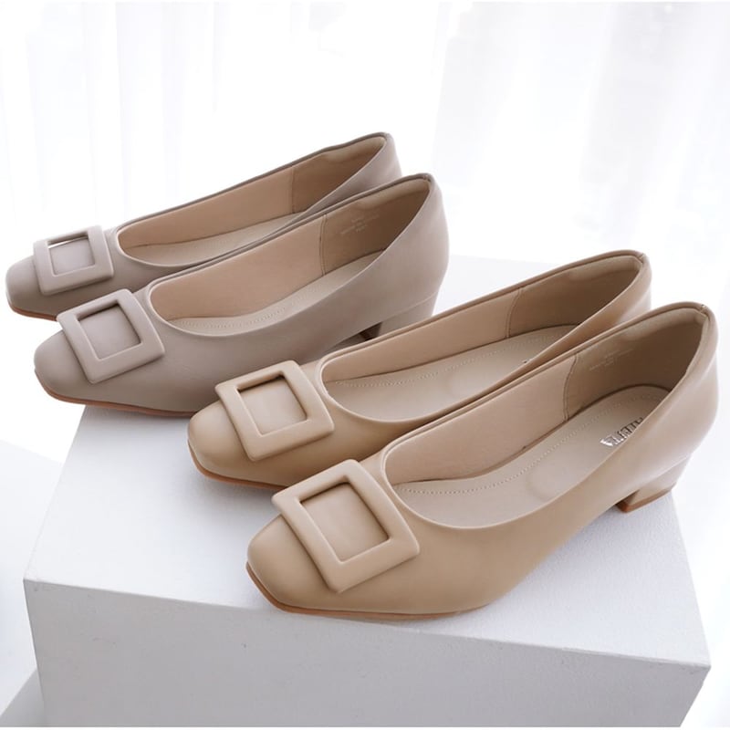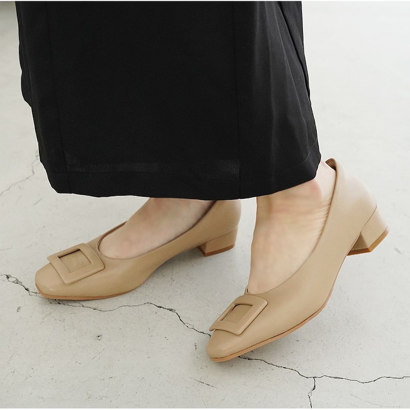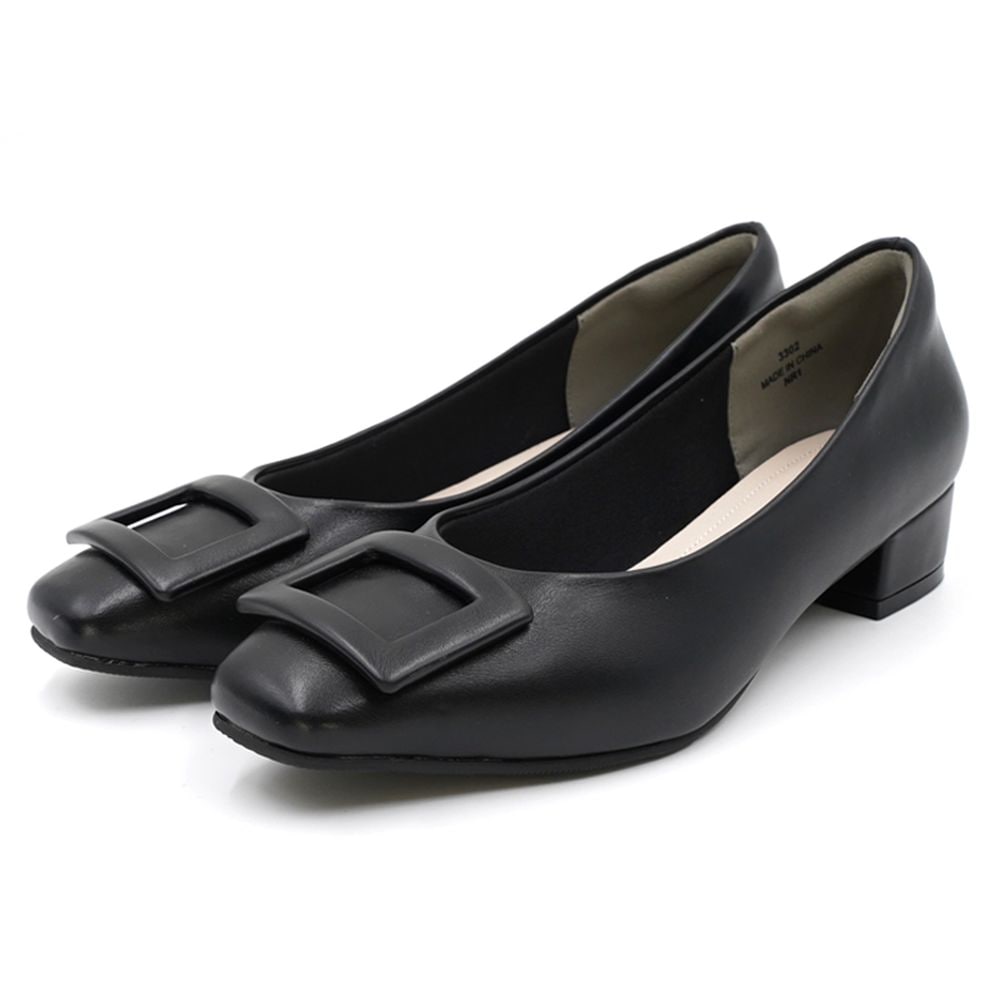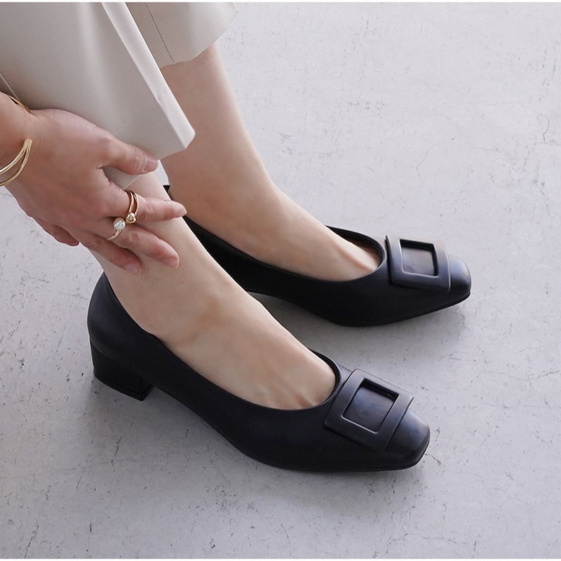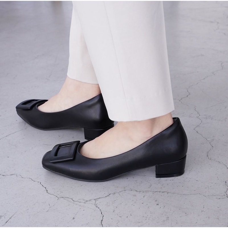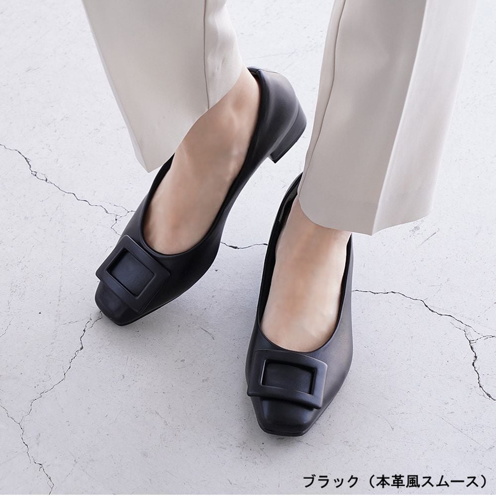 約3cmバックルスクエアパンプス【防水仕様】 【甲高・幅広】