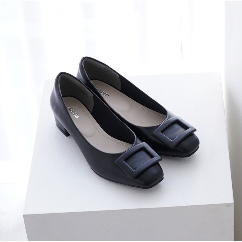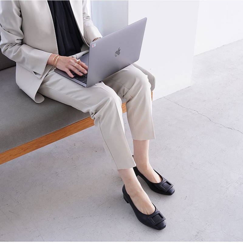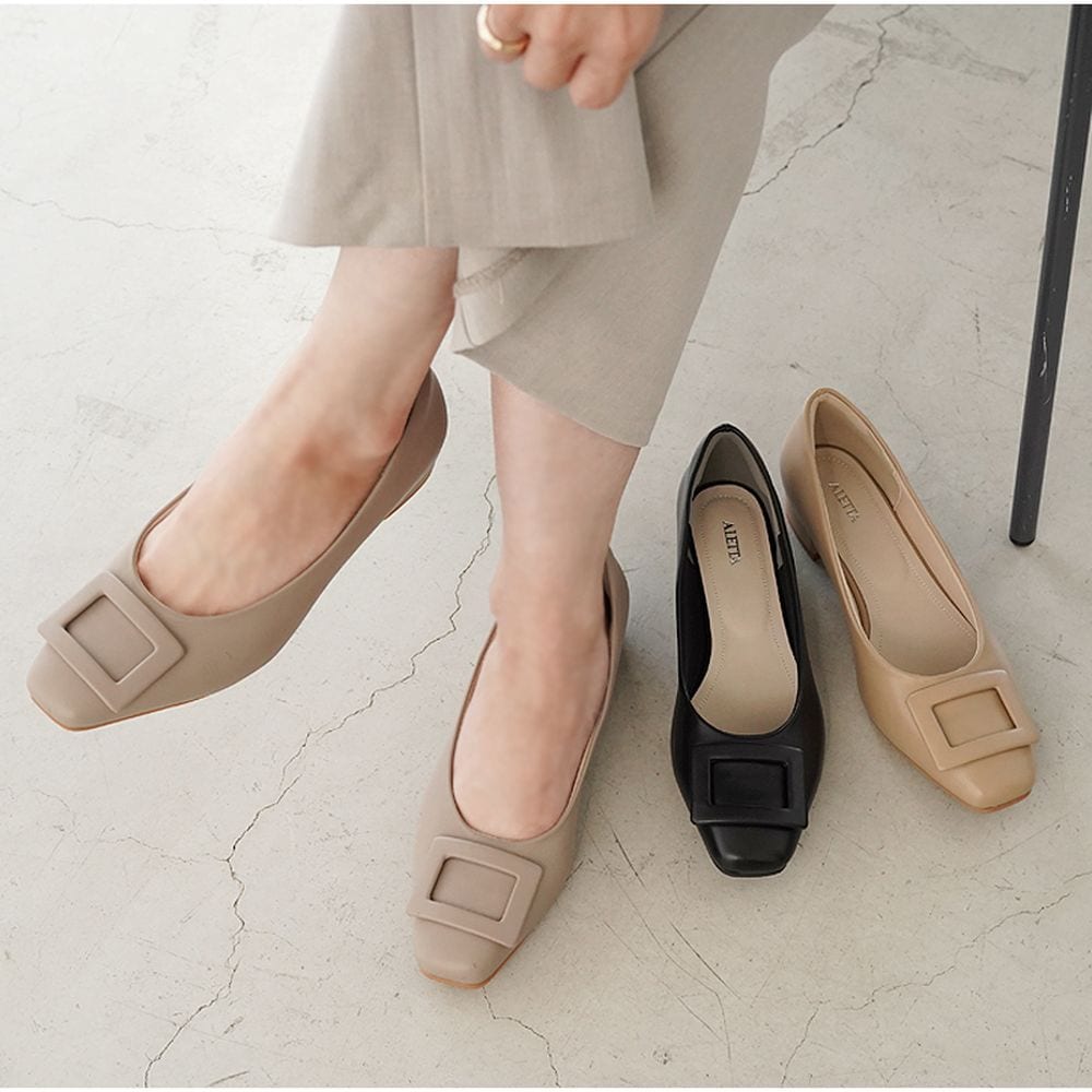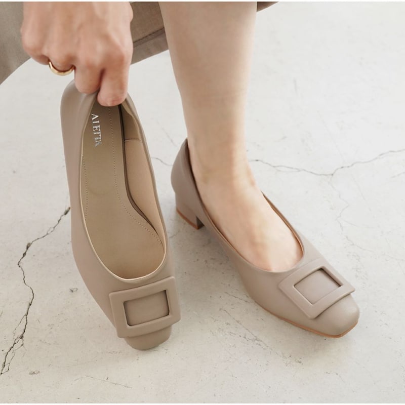 “アレッタ”究極シリーズのスクエアトウにバックルをあしらったデザイン