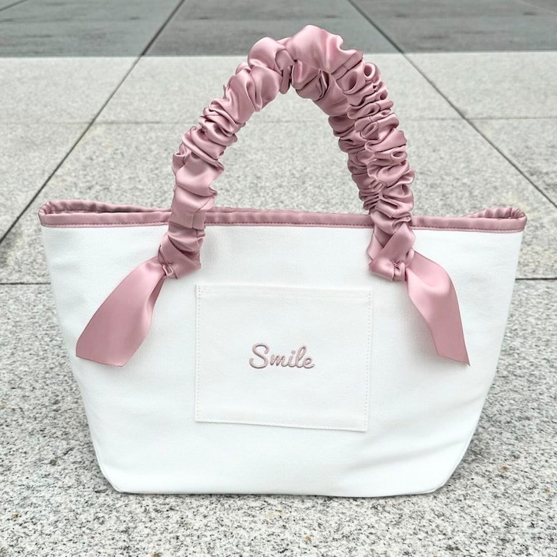 ・持ち手にはサテンリボンでひと工夫を施した、他にはないデザイン