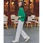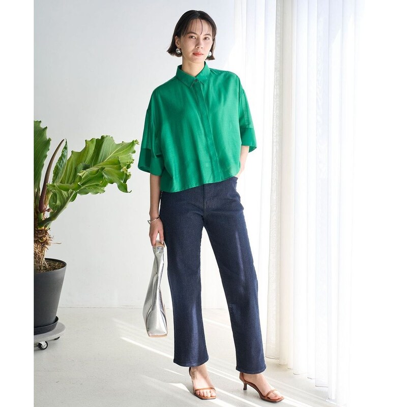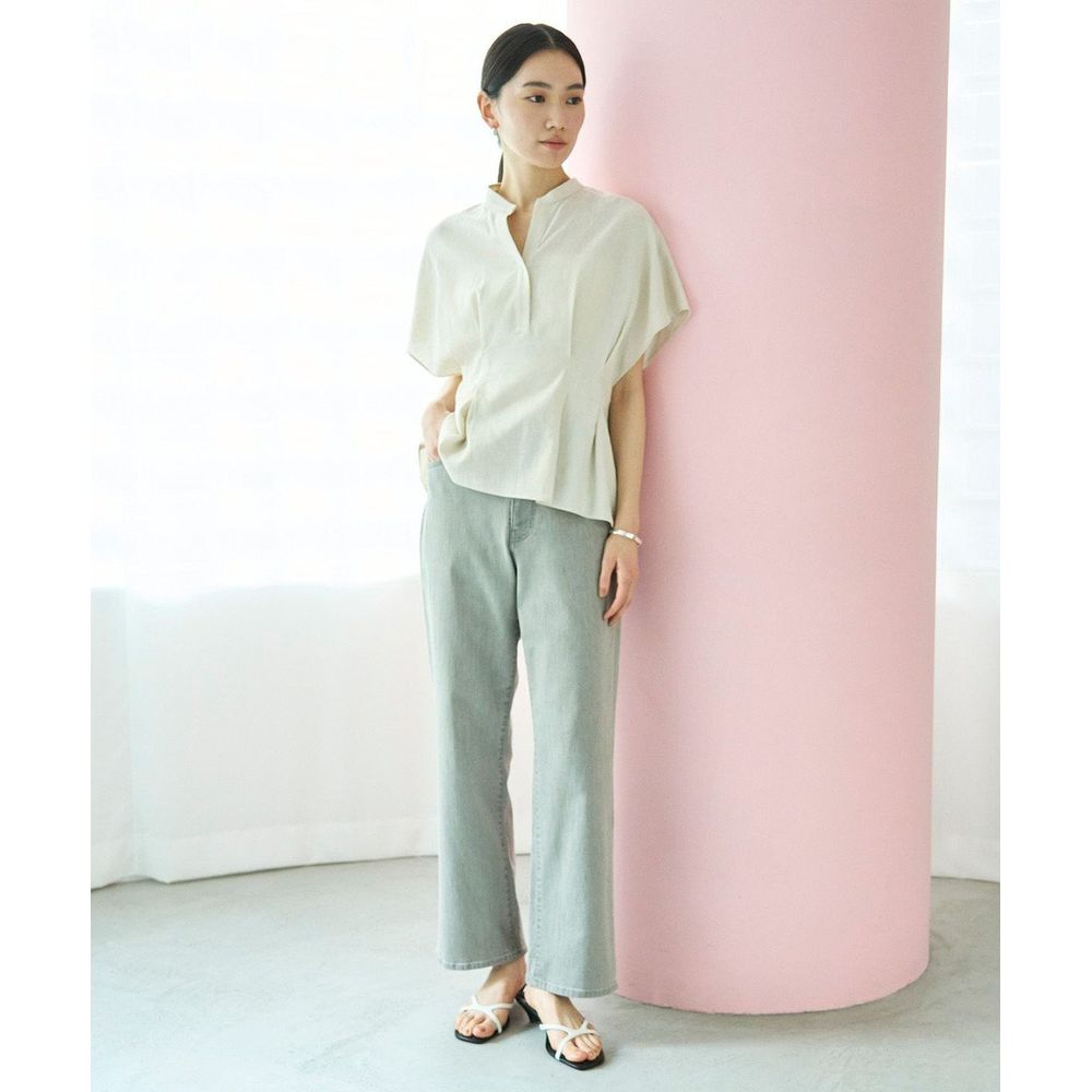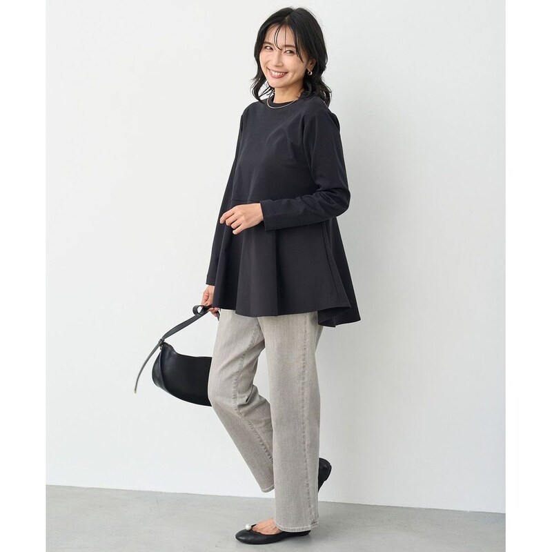 肉感を拾いにくい適度なハリ感と柔らかさを両立したストレッチ素材を使用し、オールシーズン着用可能。
