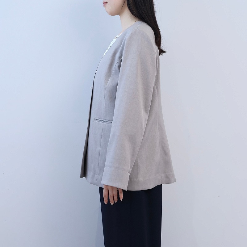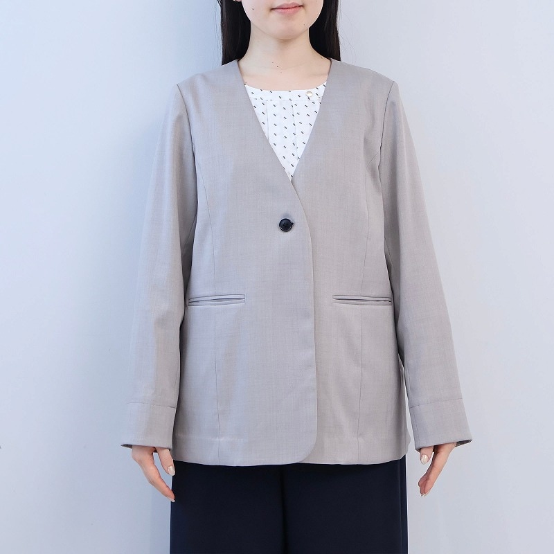 きちんと感とハンサムなシャープさを両立させた、キレイめなノーカラーVネックジャケットです。