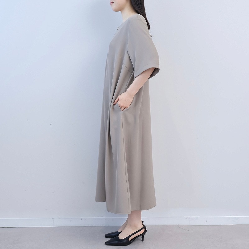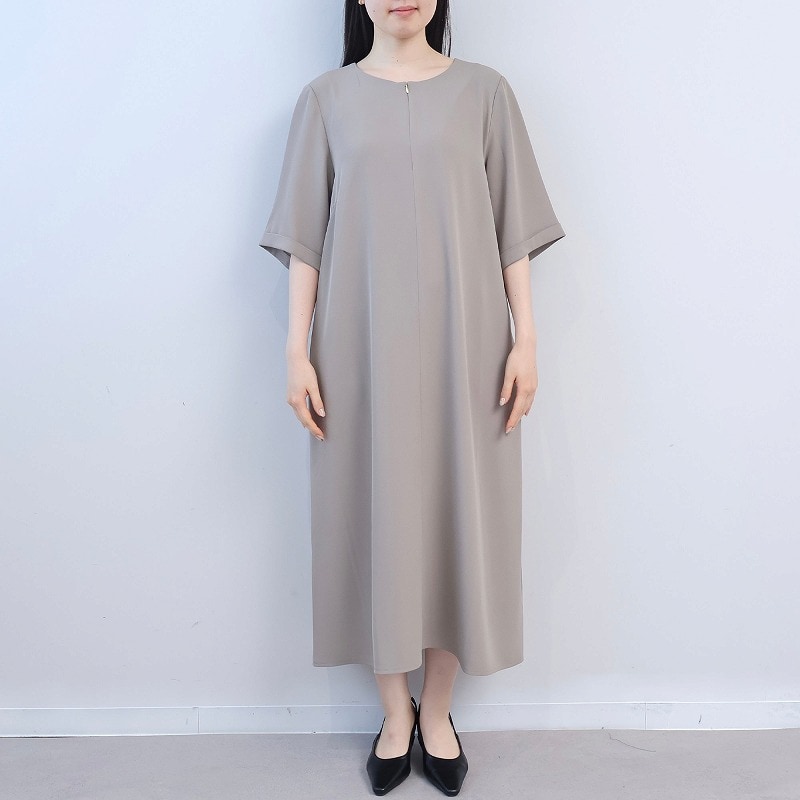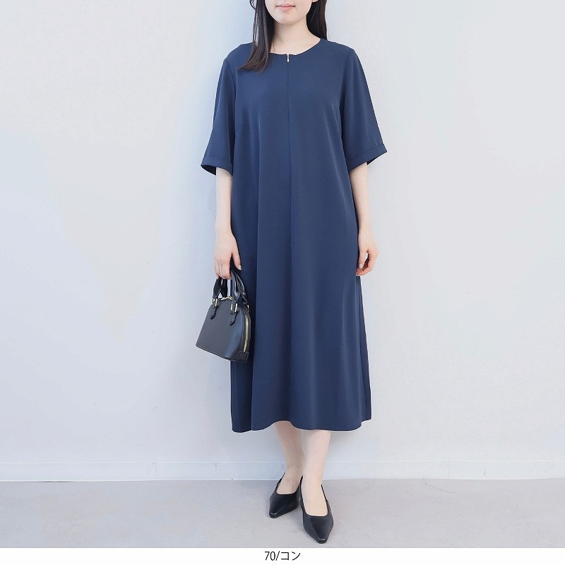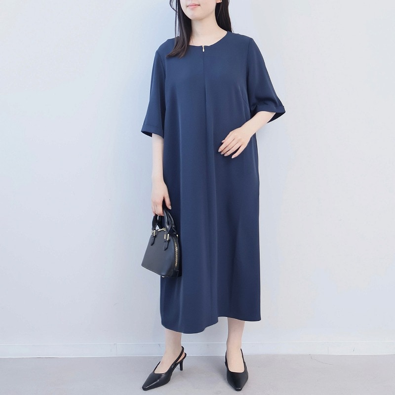 ゆったりとしたロング丈と相まってボディラインを拾いすぎず、優雅に体型カバーを叶えます。