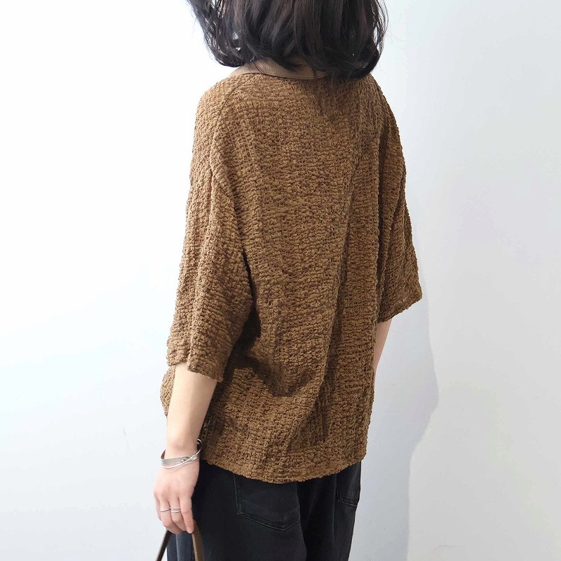 表面に凹凸感があるシャーリングニット素材を使用。