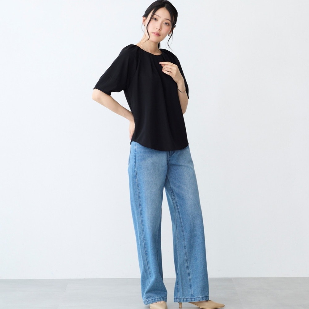 立体的なランタンスリーブが映えるブラウス