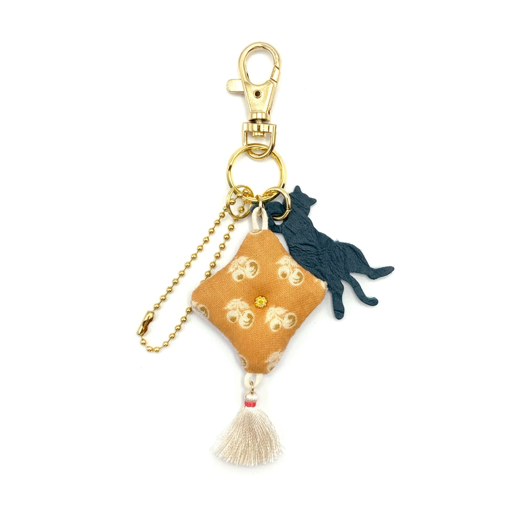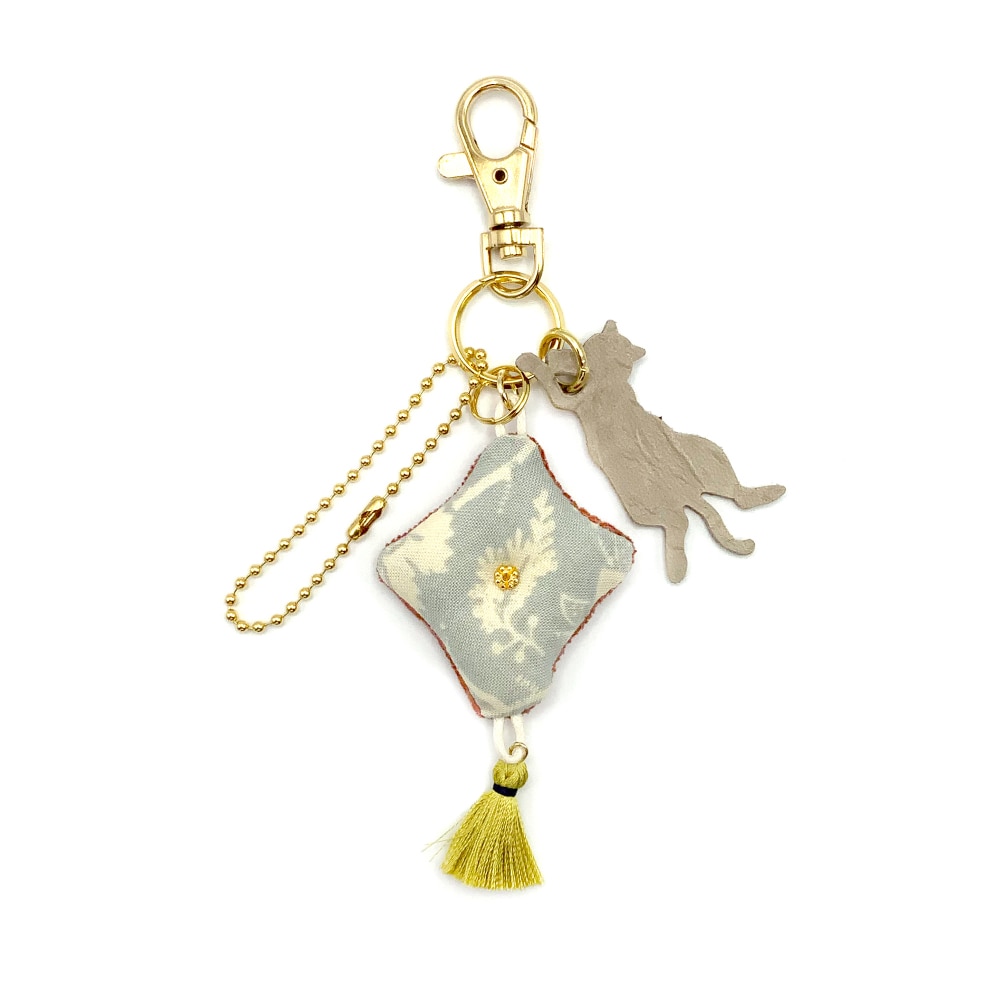 【保護ネコに寄付できる】「のんびりおやすみ」座布団で寝るネコのチャーム[日本製]