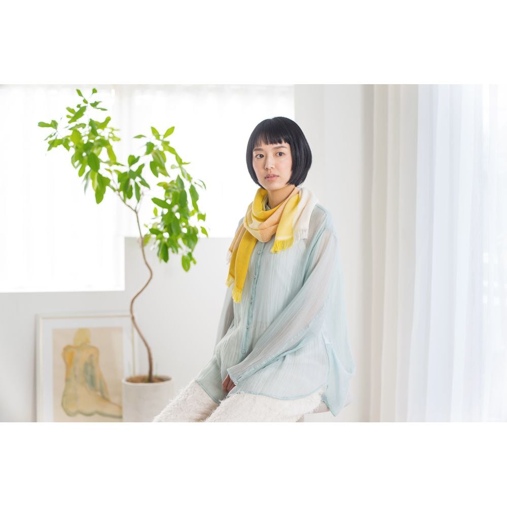 ふんわり軽やかな肌ざわりのコットンマフラー。