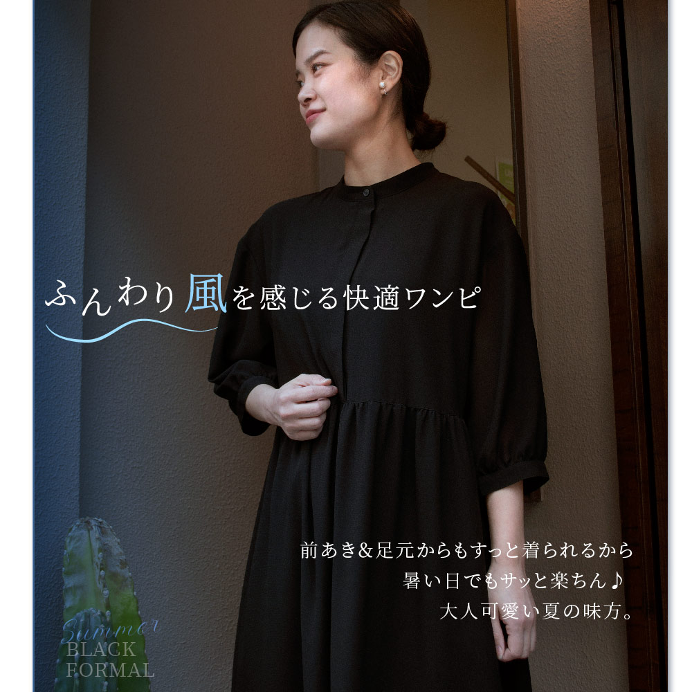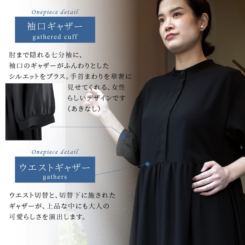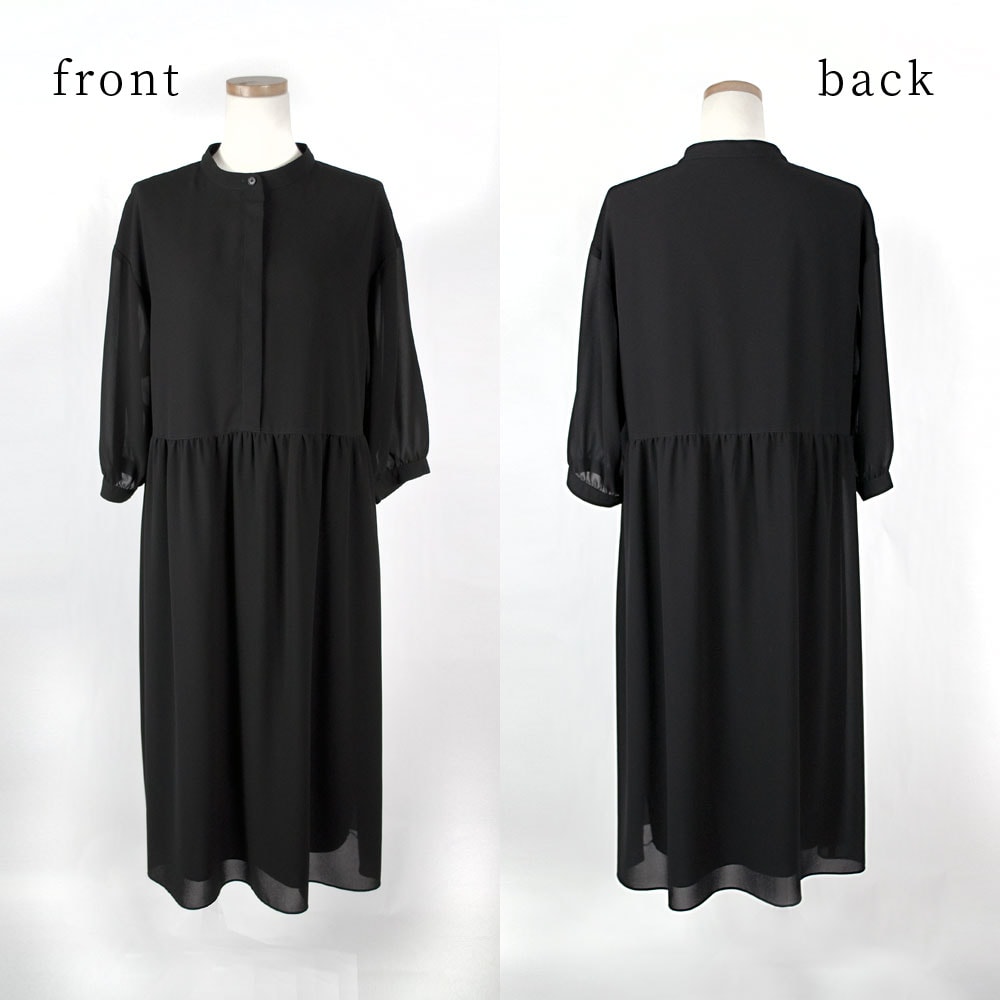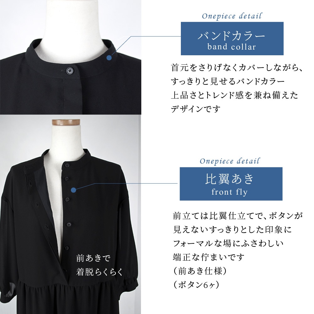 洗えるバンドカラーギャザーワンピース[日本製] 【喪服・礼服】