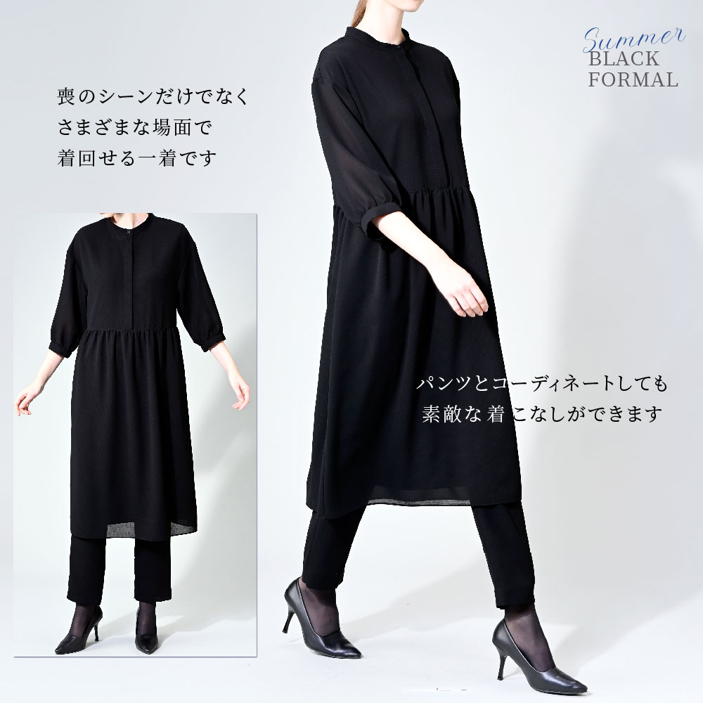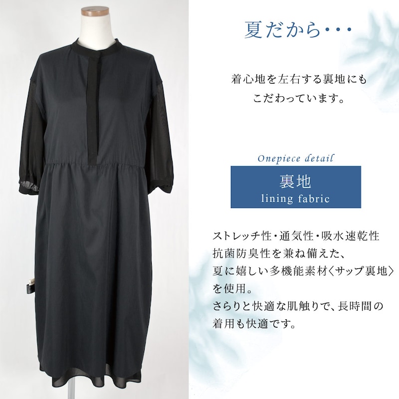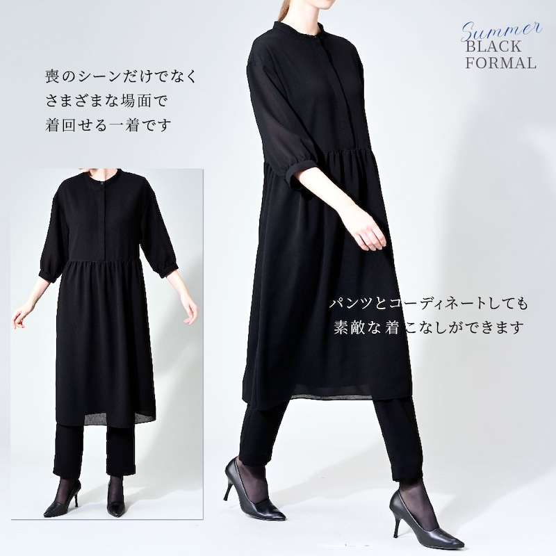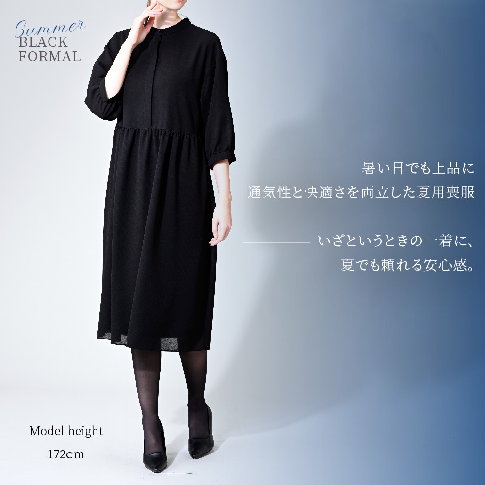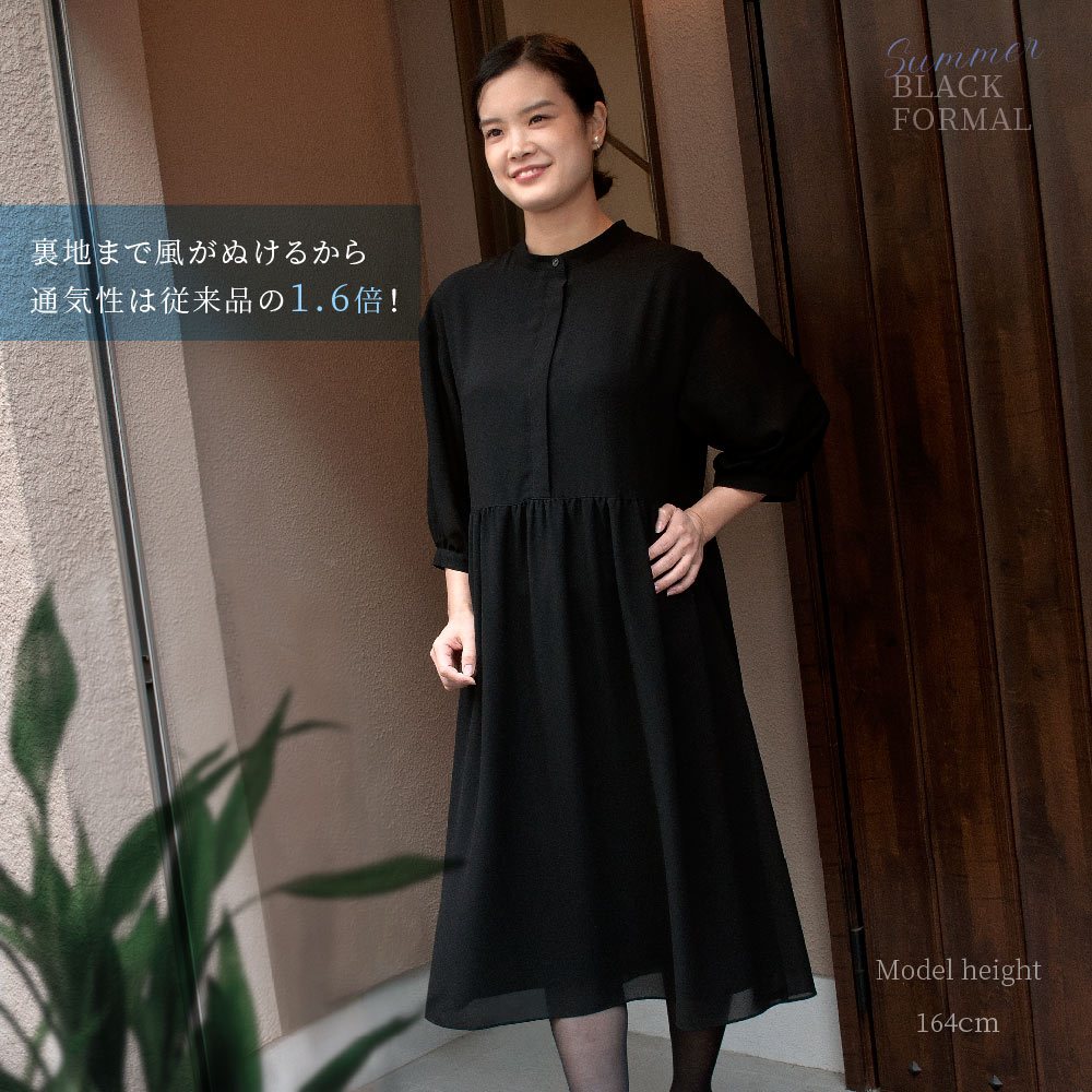 洗えるバンドカラーギャザーワンピース[日本製] 【喪服・礼服】