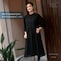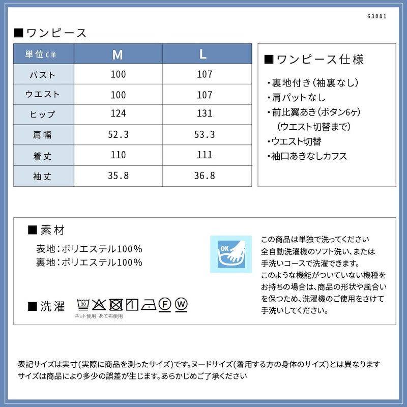 デザインは、首元を上品にカバーするバンドカラー。ウエストの切替とギャザーが、大人可愛いシルエットを演出します。フロントはボタンの隠れる比翼仕立てで、すっきりとした印象に仕上げました。