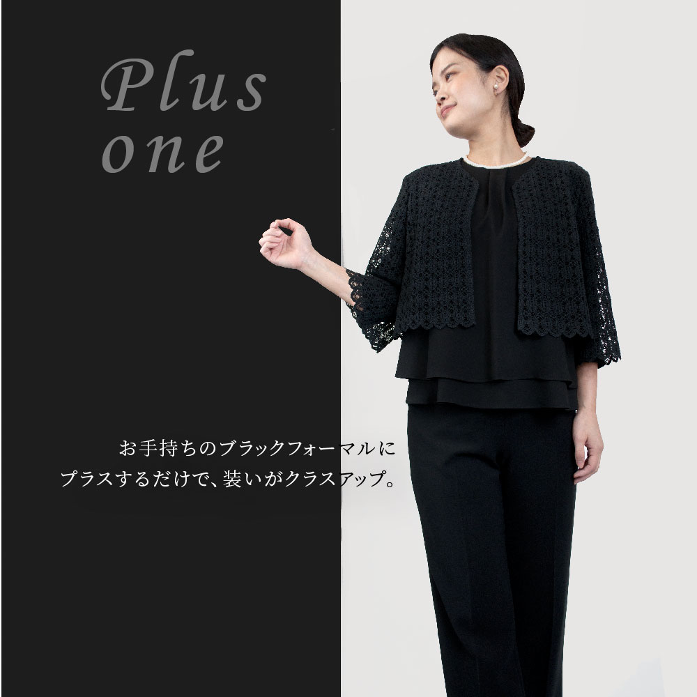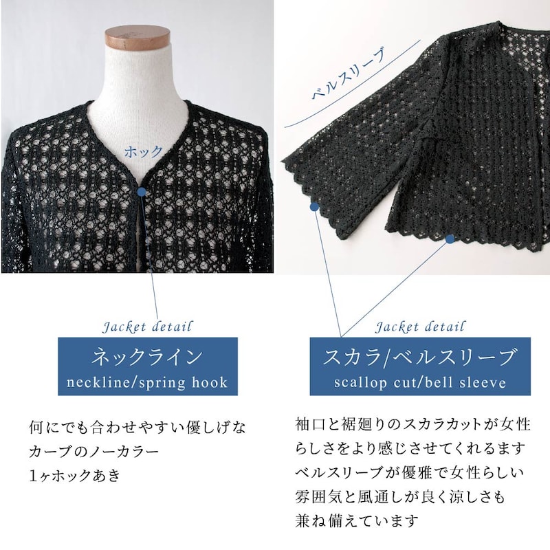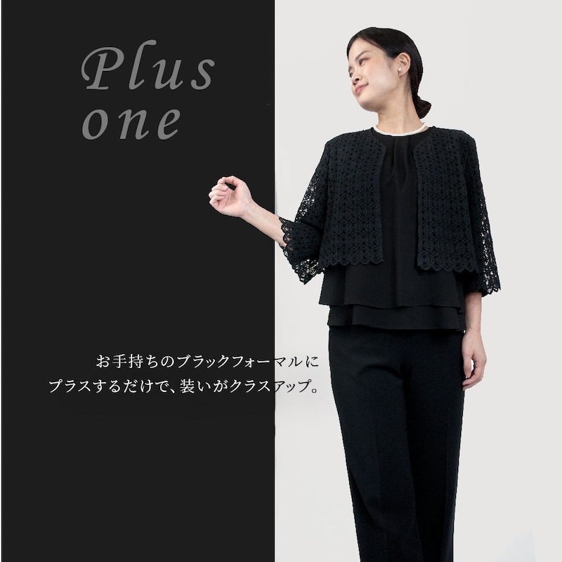 ・フォーマルなシーンにはもちろん、日常の装いにも気兼ねなく取り入れられる黒のレースジャケット。