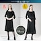 ワンピースは、1枚でスタイリングが完成するアンサンブル風のデザイン。内側左前にファスナーを配置した「前開き仕様」のため、背中に手を回すことなくスムーズに着脱いただけます。