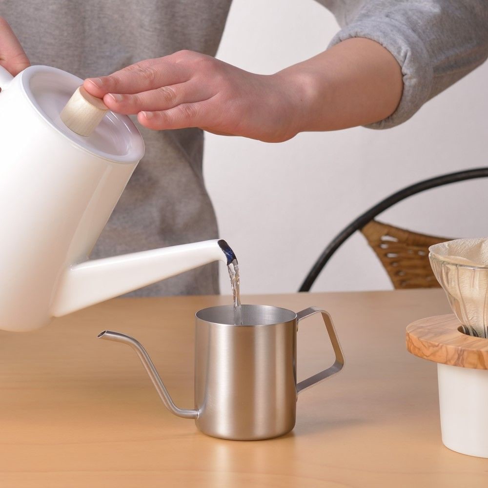 • 狙ったところに静かに注げる極細の注ぎ口で、ゆっくり静かに注げる
