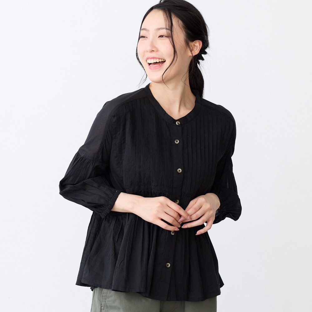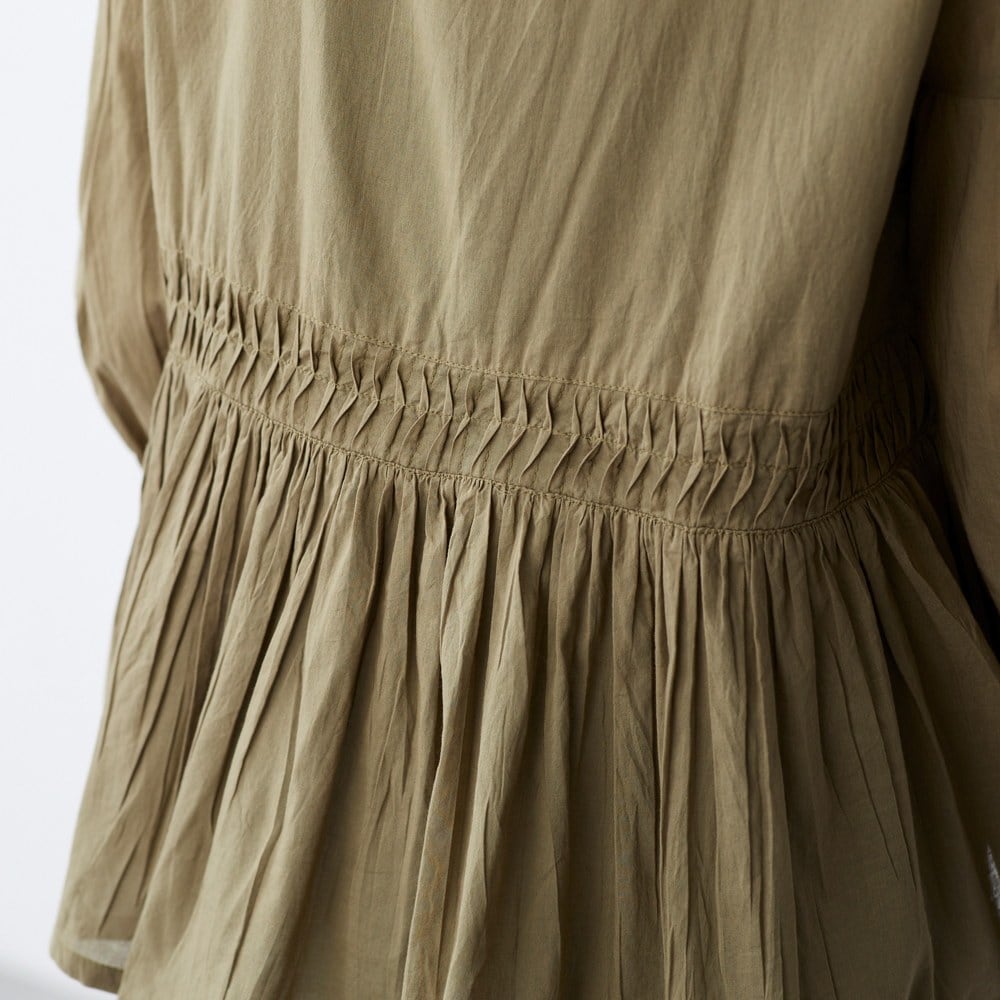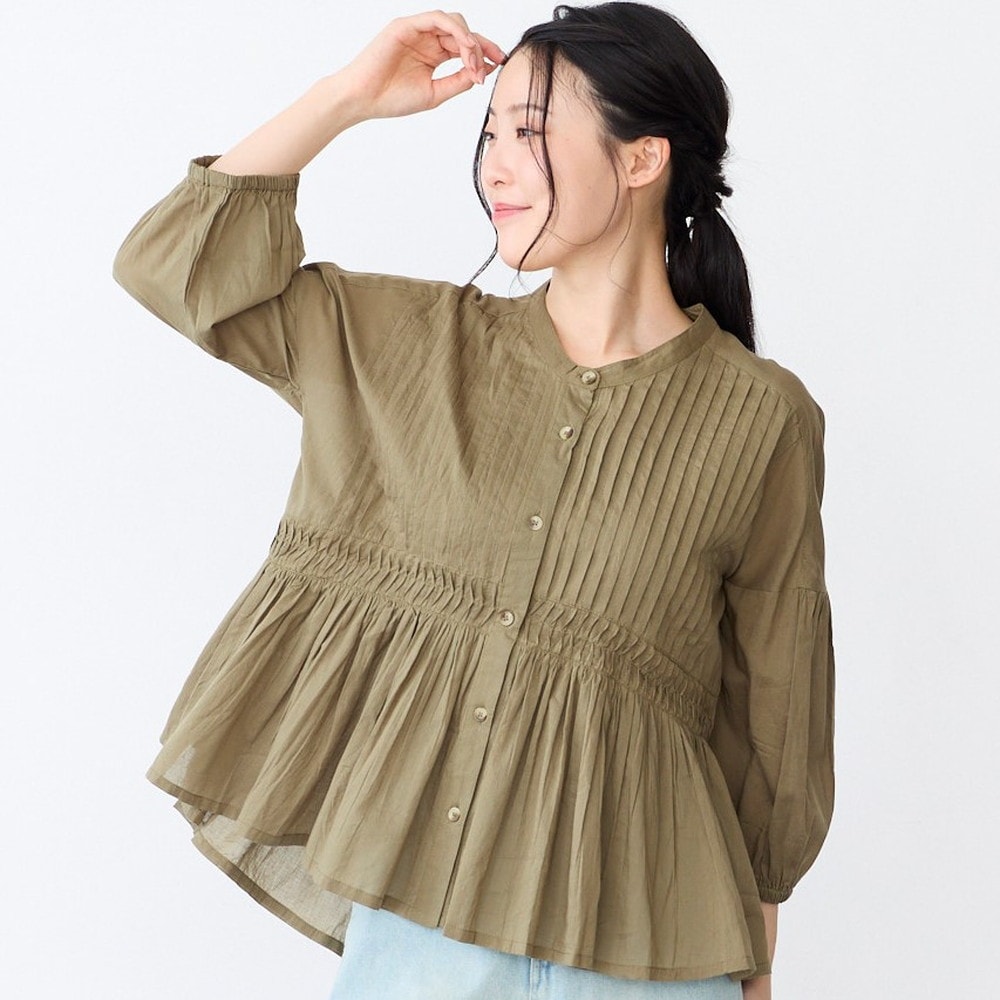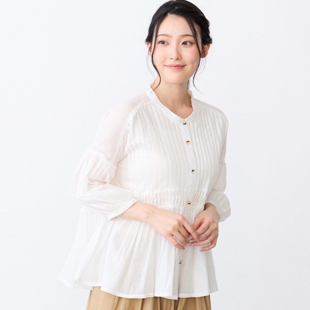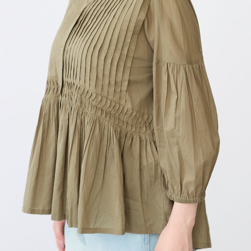 ピンタックとギャザーが華やかなコットンブラウス