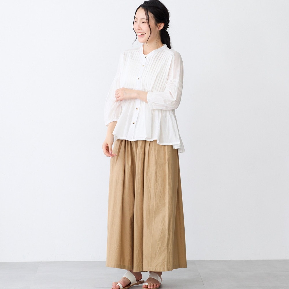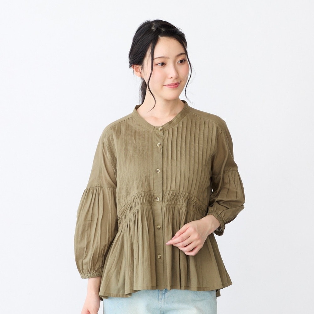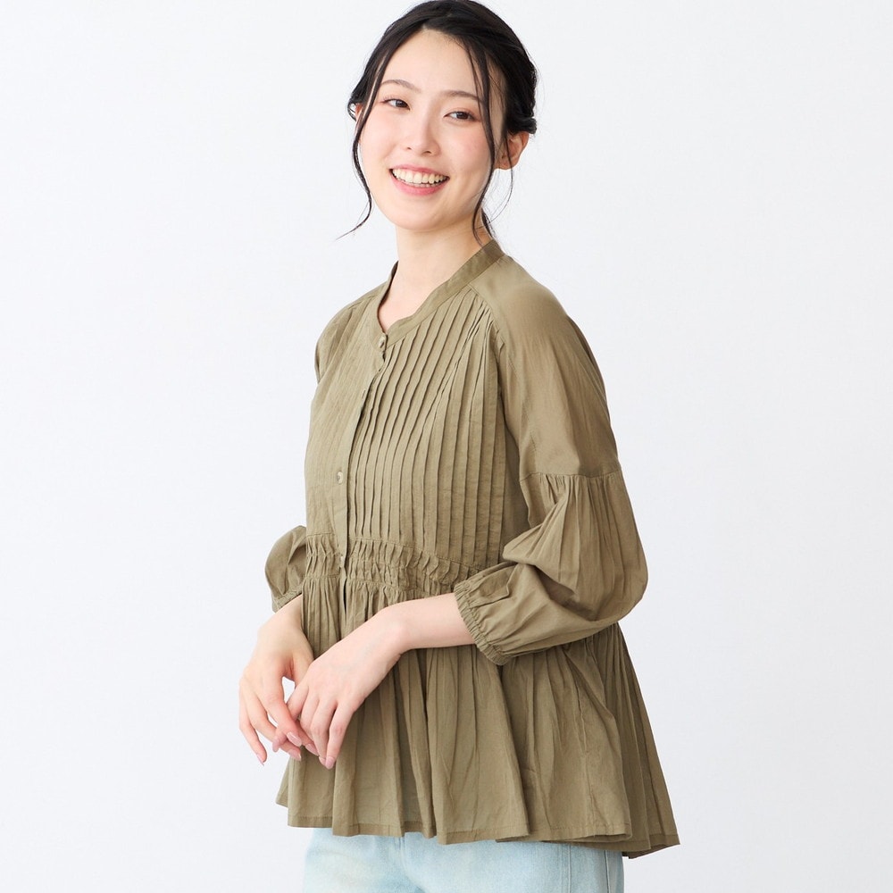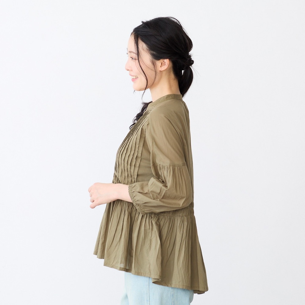 ピンタックとギャザーが華やかなコットンブラウス