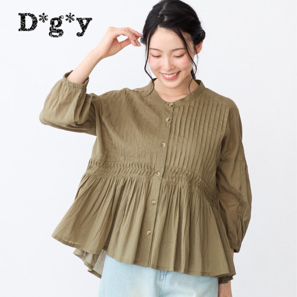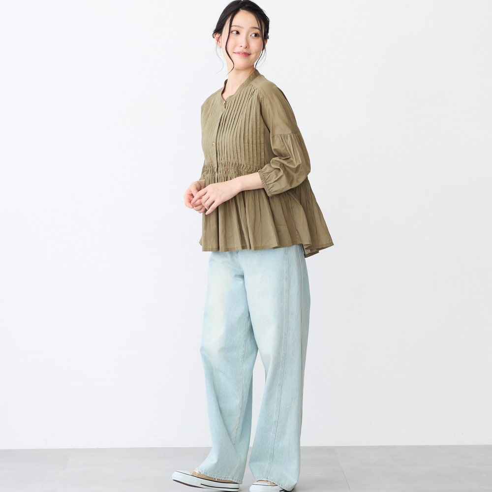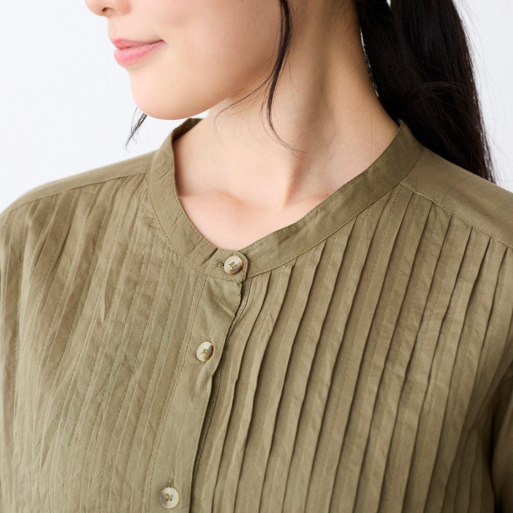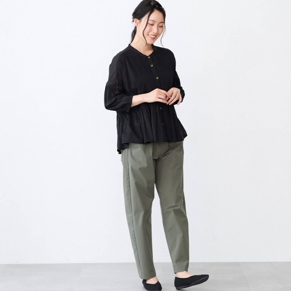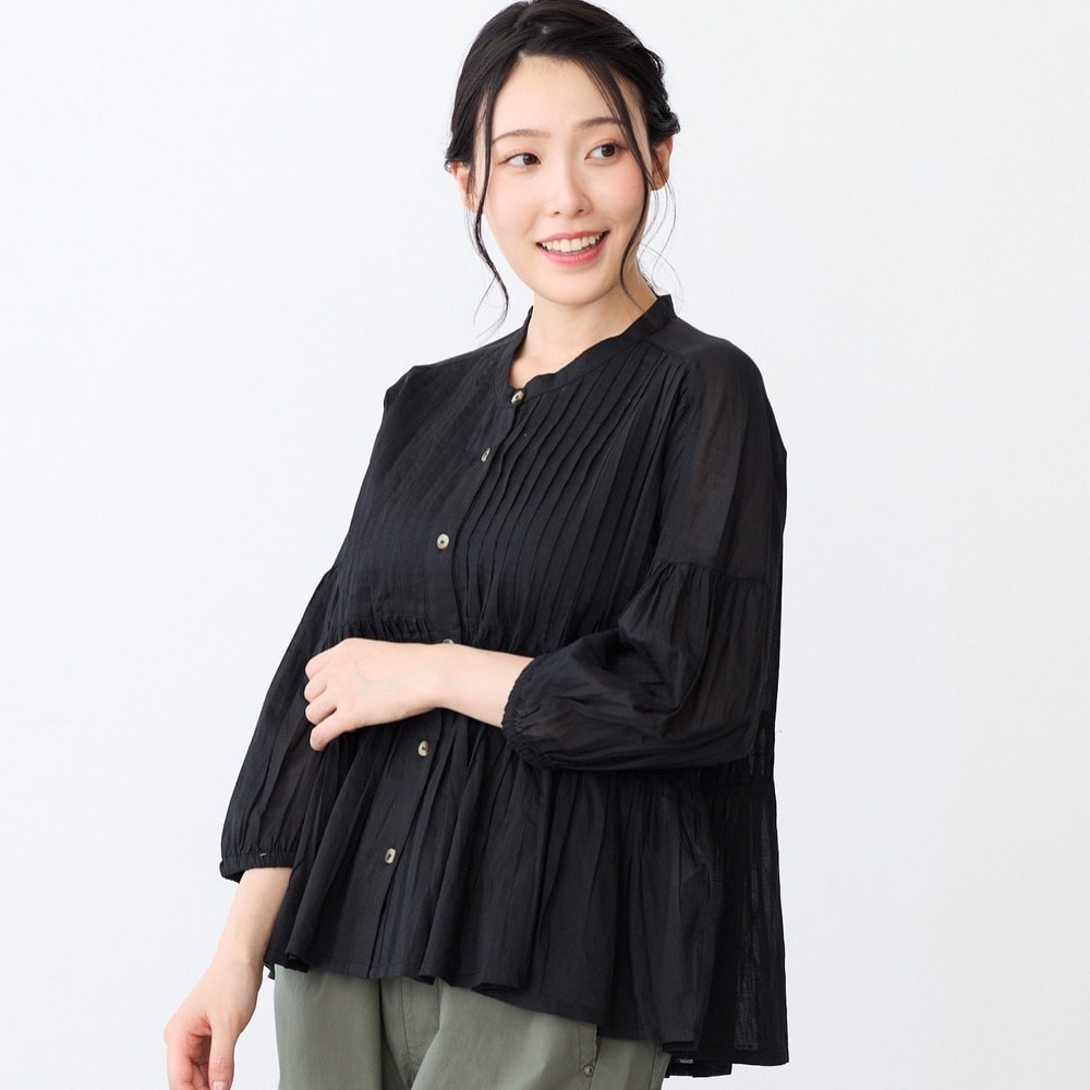 ピンタックとギャザーが華やかなコットンブラウス